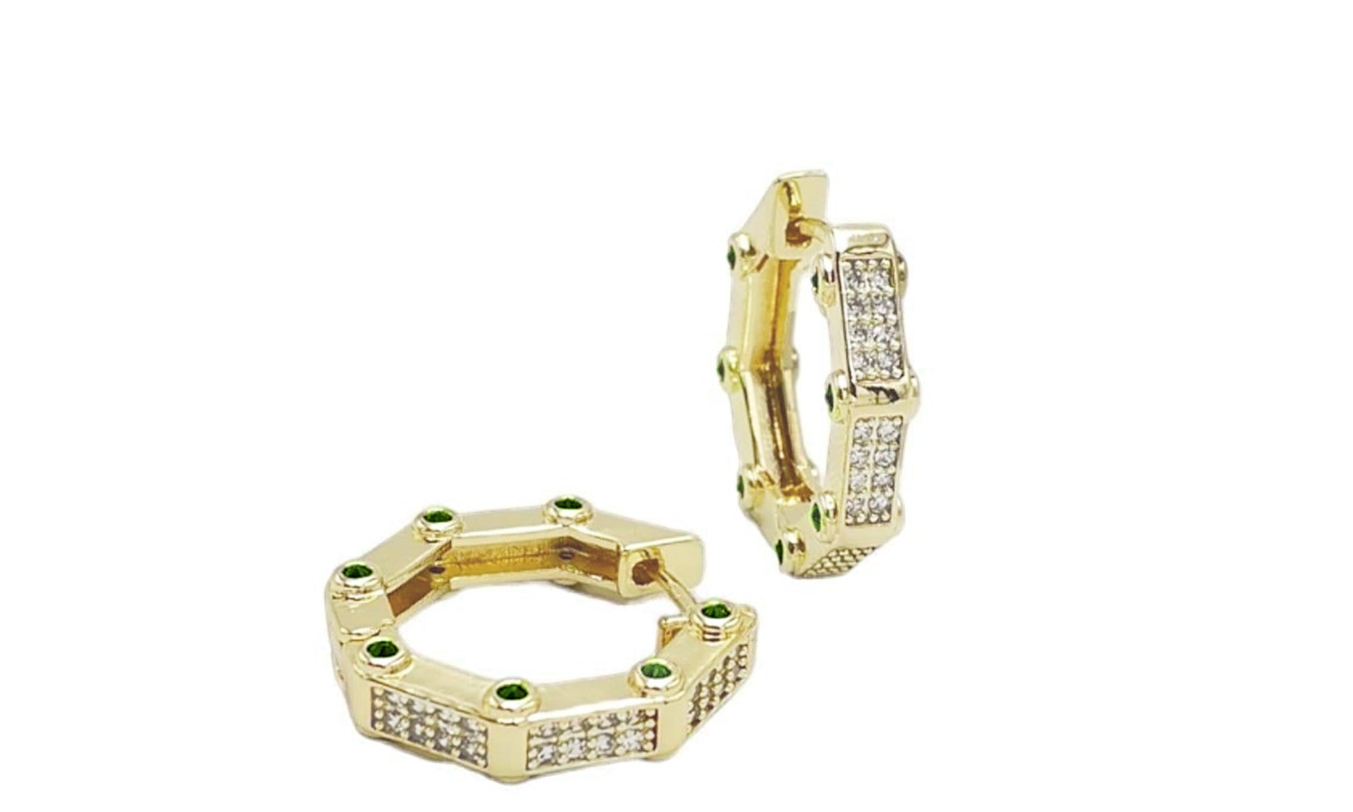 14K Solid Gold Emerald Stone Octagonal Earrings