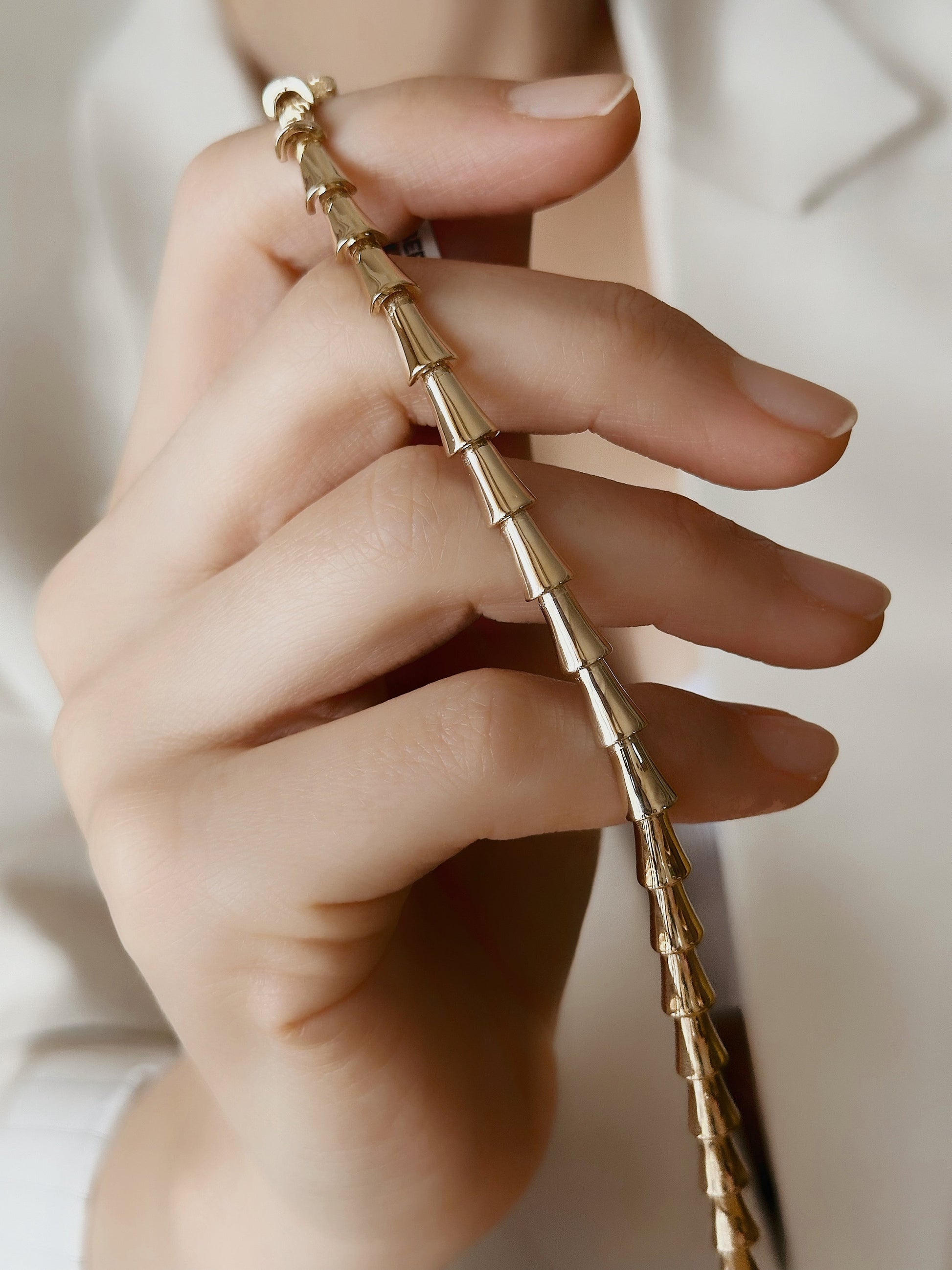 14K Solid Gold Thick Bamboo Bracelet