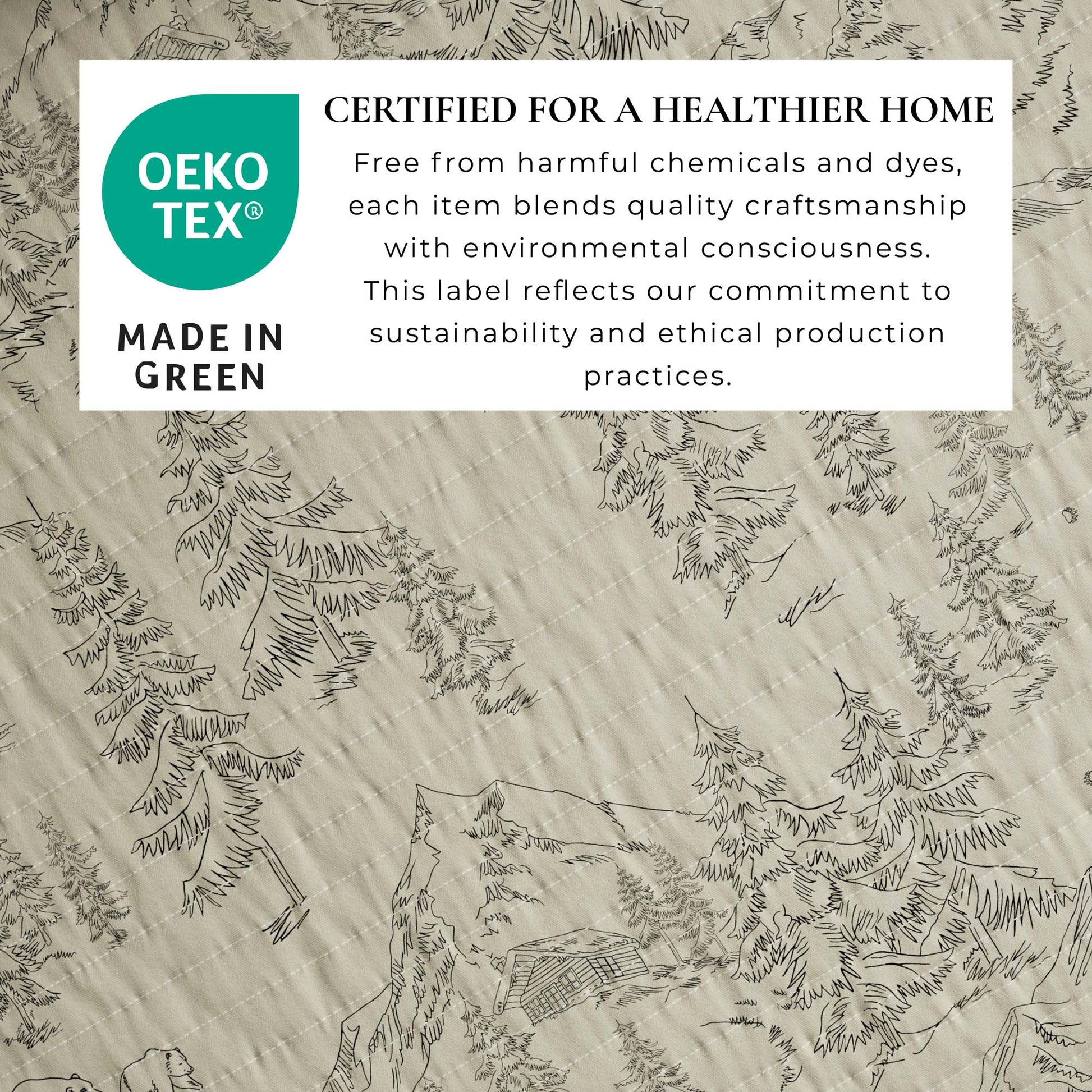 A lodge-inspired print that will decorate your bed perfectly for the winter season at your cabin. This quilt set features a sage green set with simple bear and mountain outlines, reminding us of gorgeous nature scenes. With a matching reverse on this quilt set featuring bear prints, you can easily change up the design or have a beautiful lodge accent peak through your bed styling. This bedding set is ultra-soft, durable, and perfect for layering with your other winter bedding for the ultimate bed style.