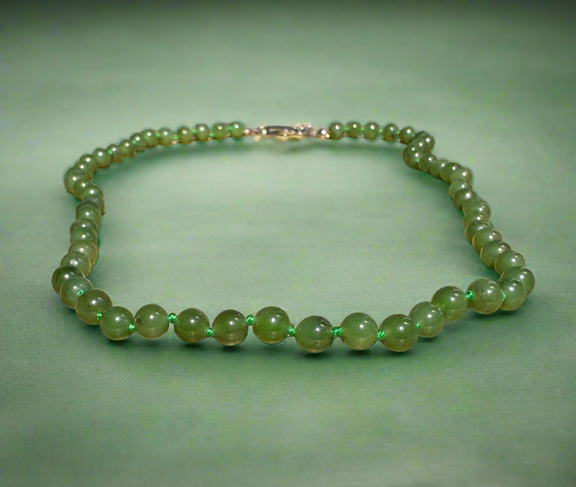 Strung 6mm Natural Nephrite Jade Beads, stainless steel clasp