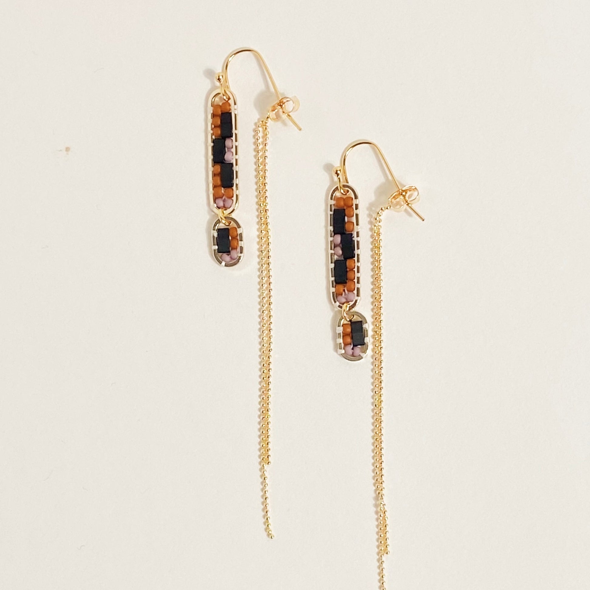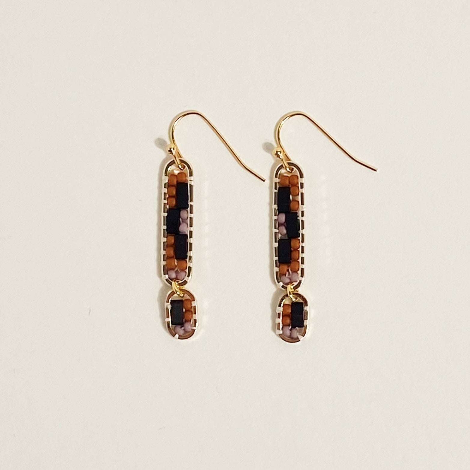 The Abstract Earrings are comprised of tila and seed beads woven to create a symmetrical flower pattern in each pair.