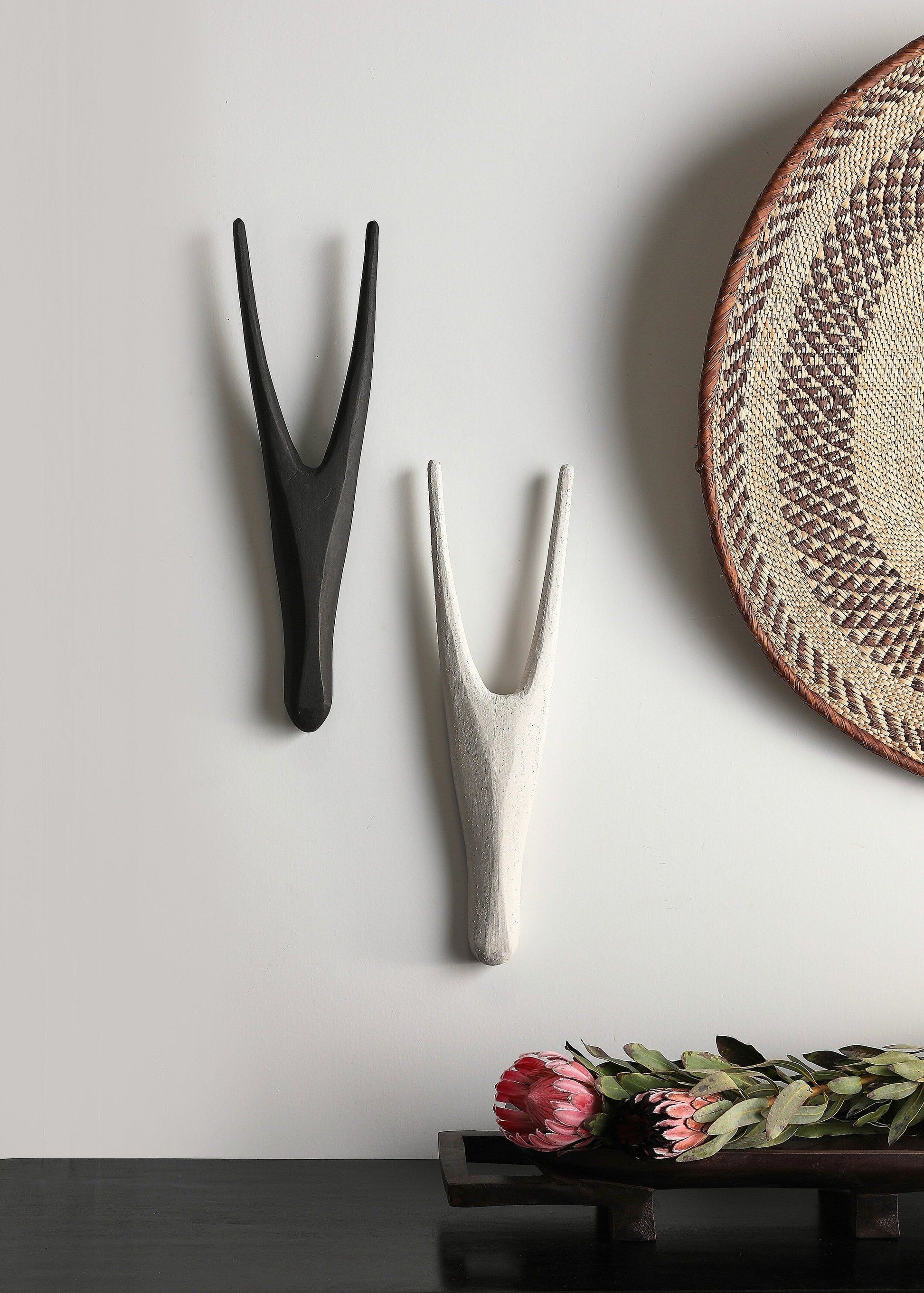 This handcrafted African antelope head is perfect for mounting indoors or outdoors and will weather well, slowly changing to a greyish hue if left outdoors. It is hand carved from a single piece of Blue Gum wood, a form of eucalyptus found throughout southeast Africa. The wood species in invasive in South Africa, and systematic removal of the wood protects native woods and old growth forests, making the pieces both beautiful and eco-friendly.