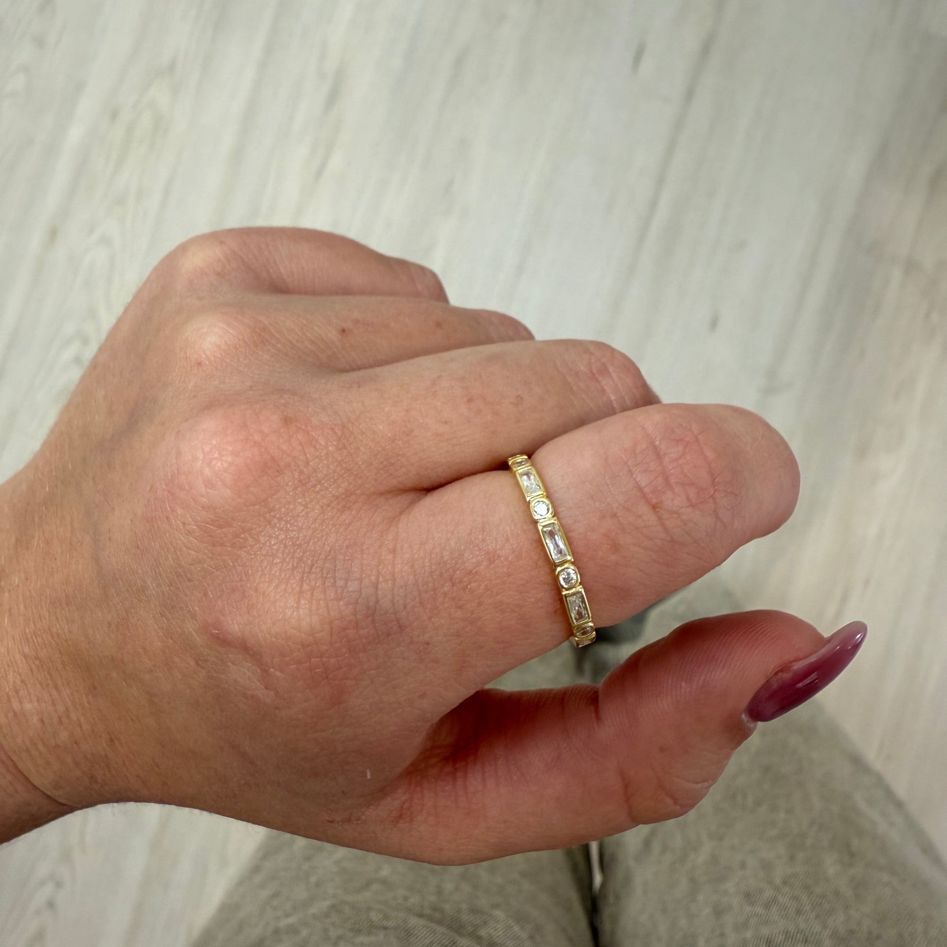 This delicate Aimee CZ Bezel Ring features a brilliant cubic zirconia stone set in a sleek bezel setting. Designed for versatility, it's perfect for stacking with other rings to create your own unique look. The comfortable band makes it ideal for everyday wear, allowing you to mix and match with your existing jewelry collection for endless styling possibilities.