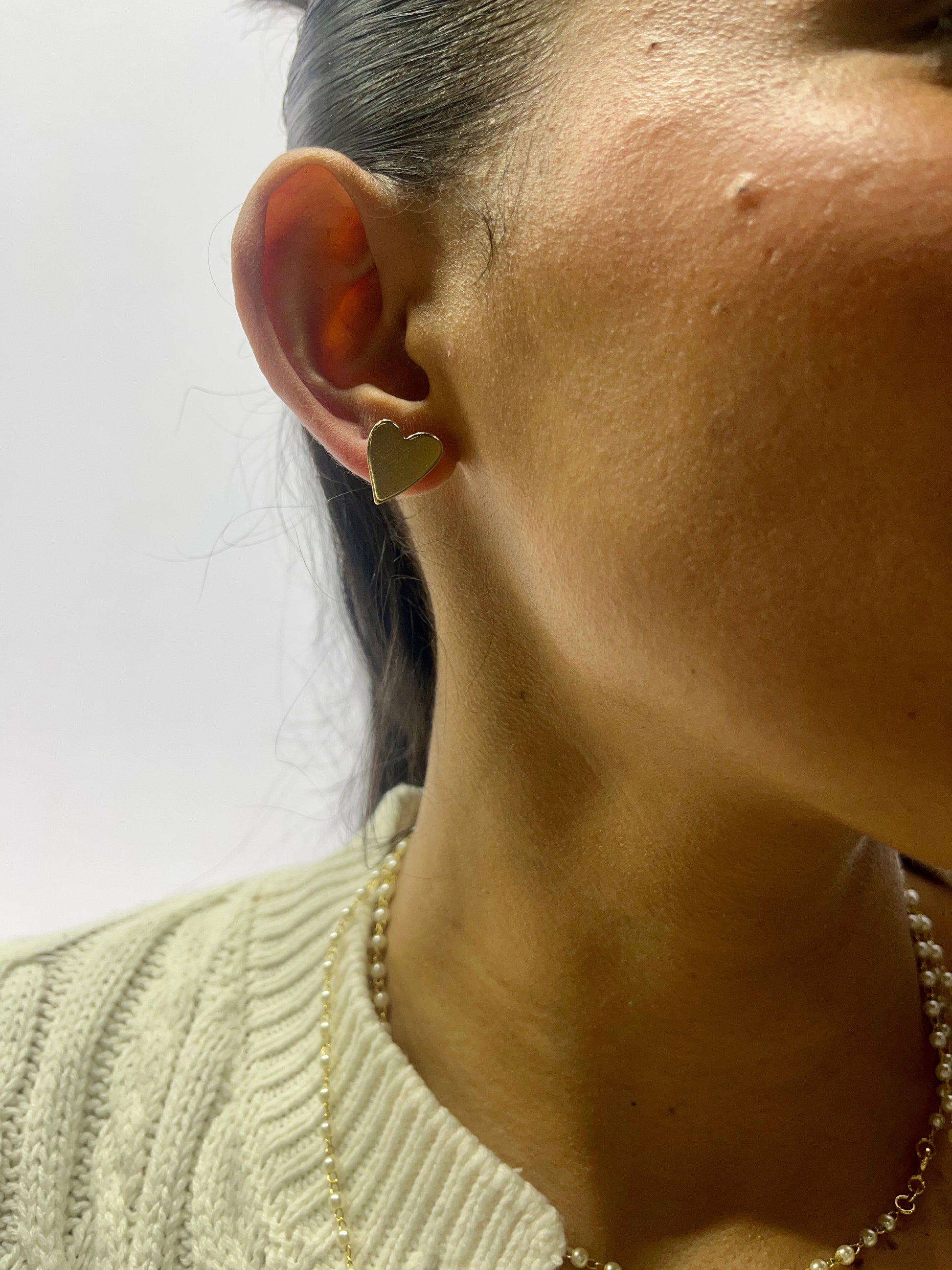 Fall in love with AMANDA! These flat heart studs are hypoallergenic and crafted with 18k gold fill. No more itchy ears, just stylish and comfortable earrings. Upgrade your jewelry collection with AMANDA today!
