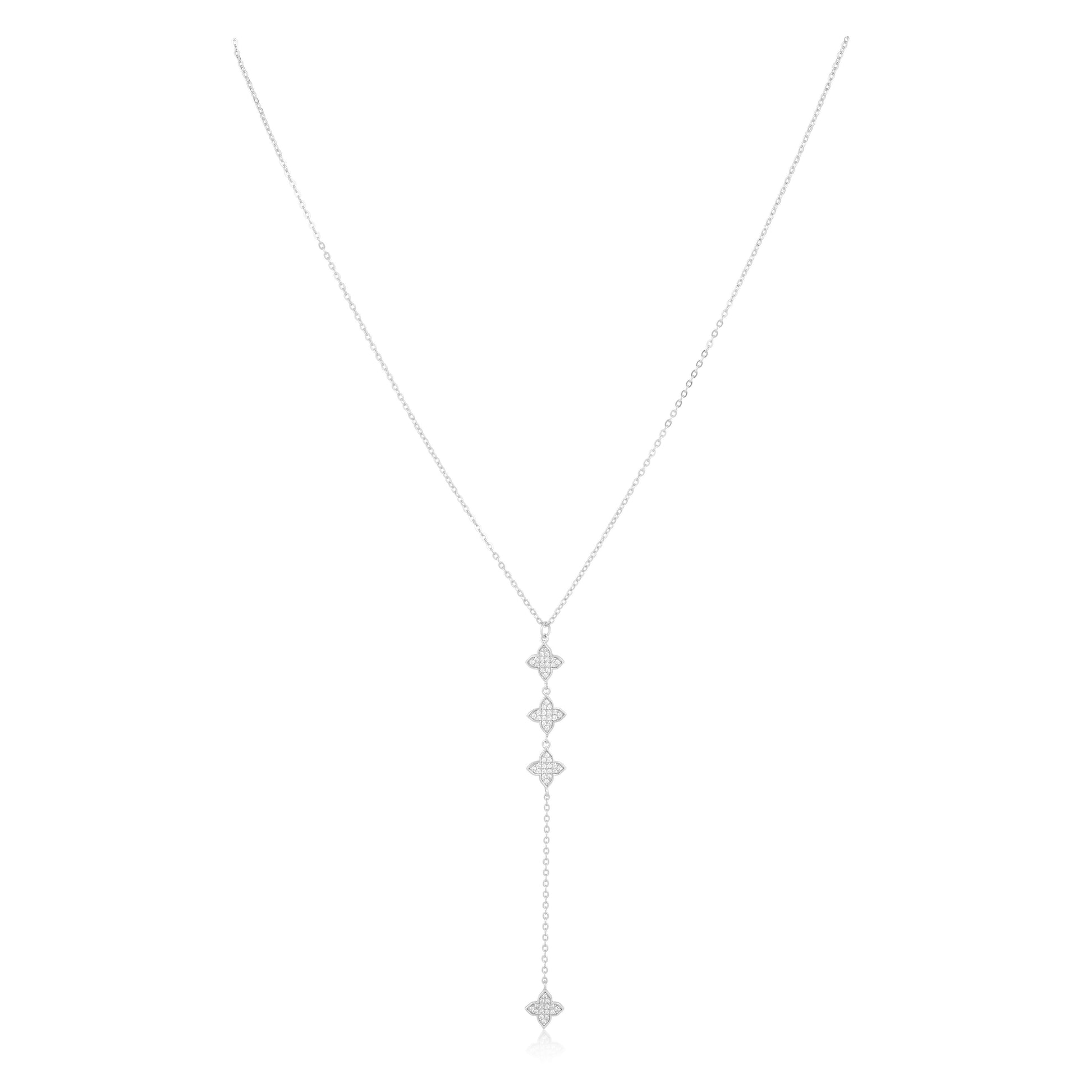 Experience the sweet sophistication of our Amanda CZ Lariat necklace, adorned with sparkling pave stones. Perfect for adding a touch of elegance to any outfit.