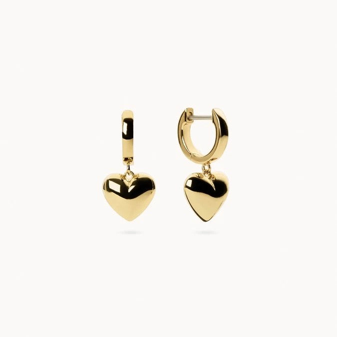 Fall in love with our Amoretta Huggie! This gold huggie is adorned with a sweet heart that will show your love to everyone.
