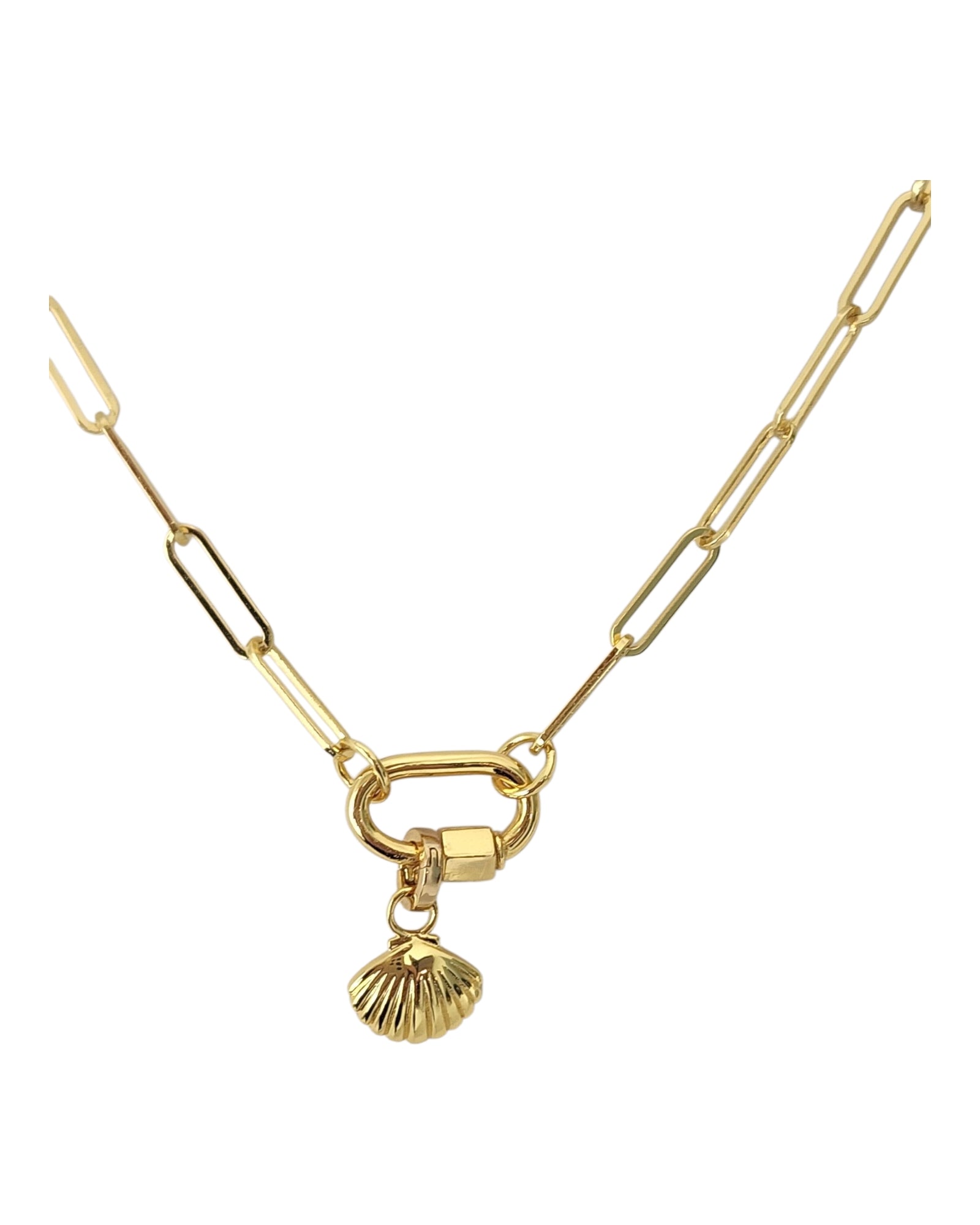 Elevate your style with the ANAHID-SHELL 16" necklace, featuring a delicate shell charm crafted in 18k gold-filled metal. This elegant piece adds a subtle touch of sophistication and coastal charm to any outfit, perfect for daily wear or special occasions. Durable yet lightweight, it offers lasting beauty and a refined look that complements your unique personality.
