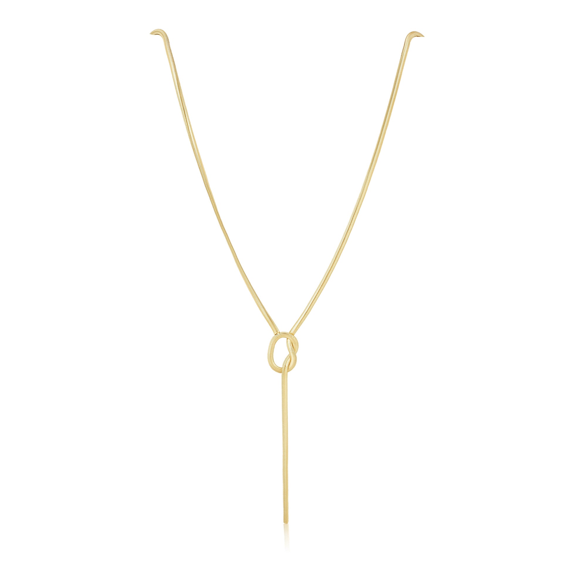 This Angela Knot Necklace will give your look a modern edge! Crafted with a snake chain, it's the perfect piece to add a little twist to your wardrobe.