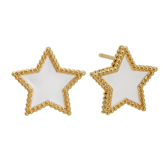 These spectacular enamel star stud earrings are fashioned with hypoallergenic 18k goldfilled, making them a great choice for sensitive ears. The design and craftsmanship make them a timeless classic, perfect for any occasion.