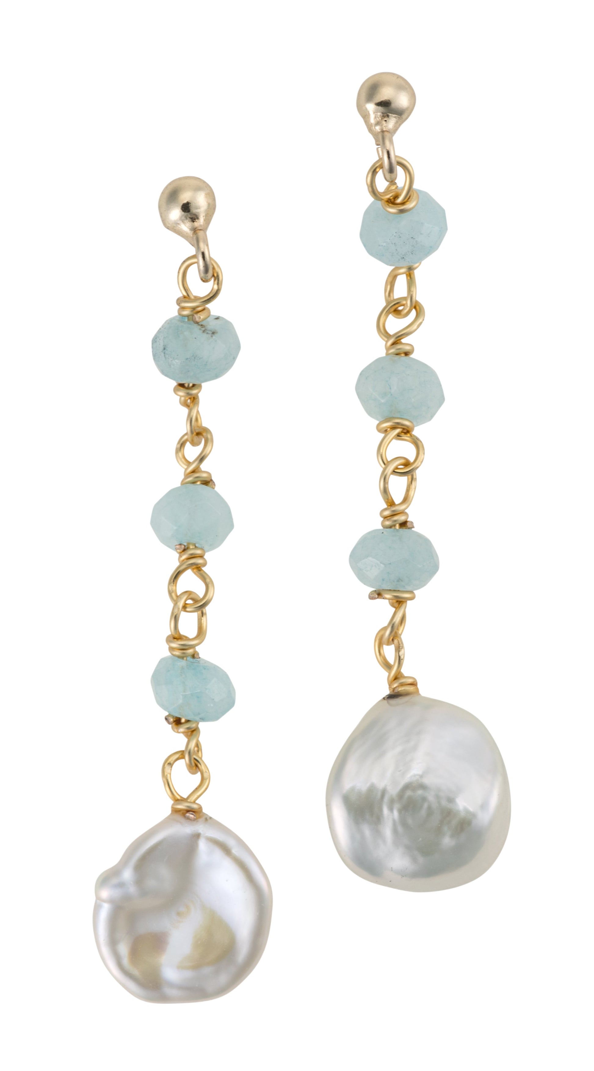 Aquamarine and Freshwater Pearl Hanging Earrings