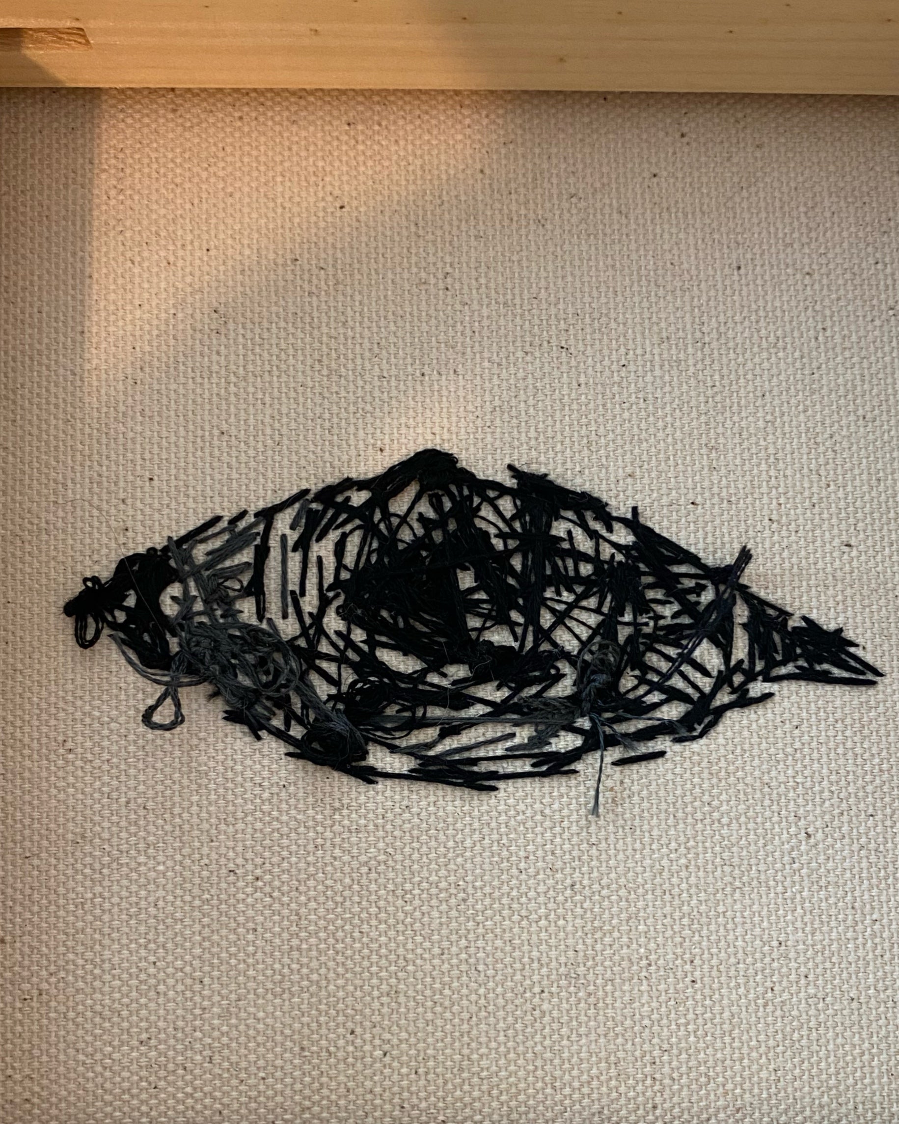 This original painting measures 8 x 8 inches and is mixed media on a deep edge gallery wrapped canvas and does not need to be framed. The eye is hand beaded with primarily glass seed beads.