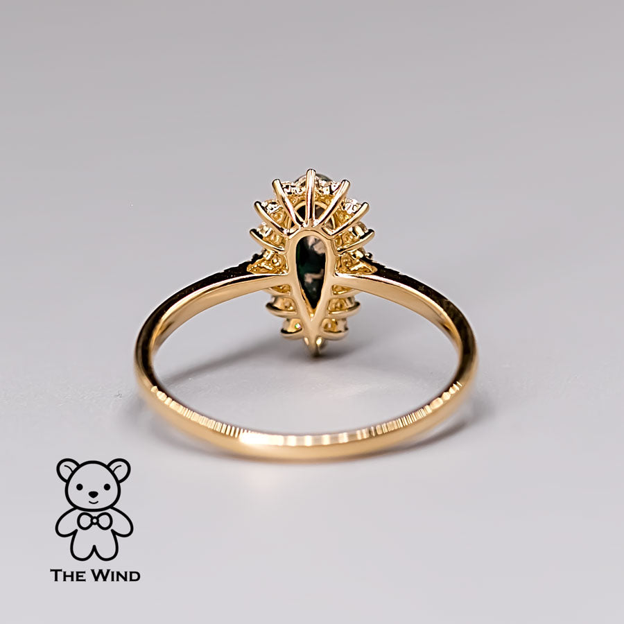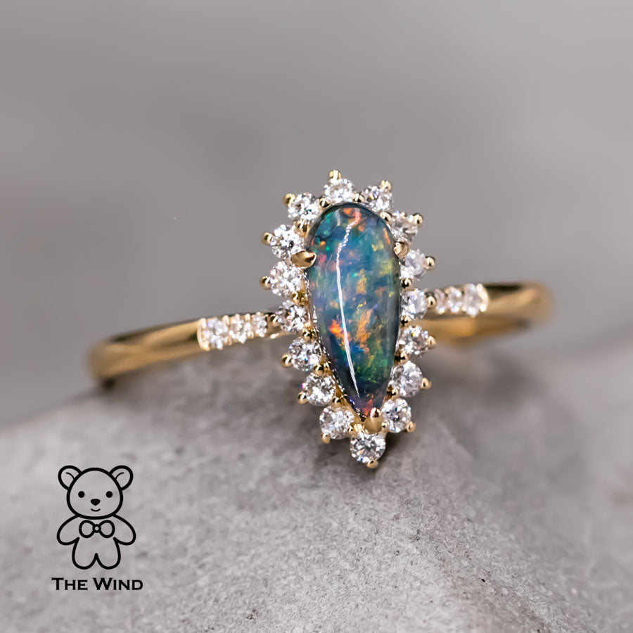 Australian Black Opal & Halo Diamond Engagement Ring 18K Yellow Gold