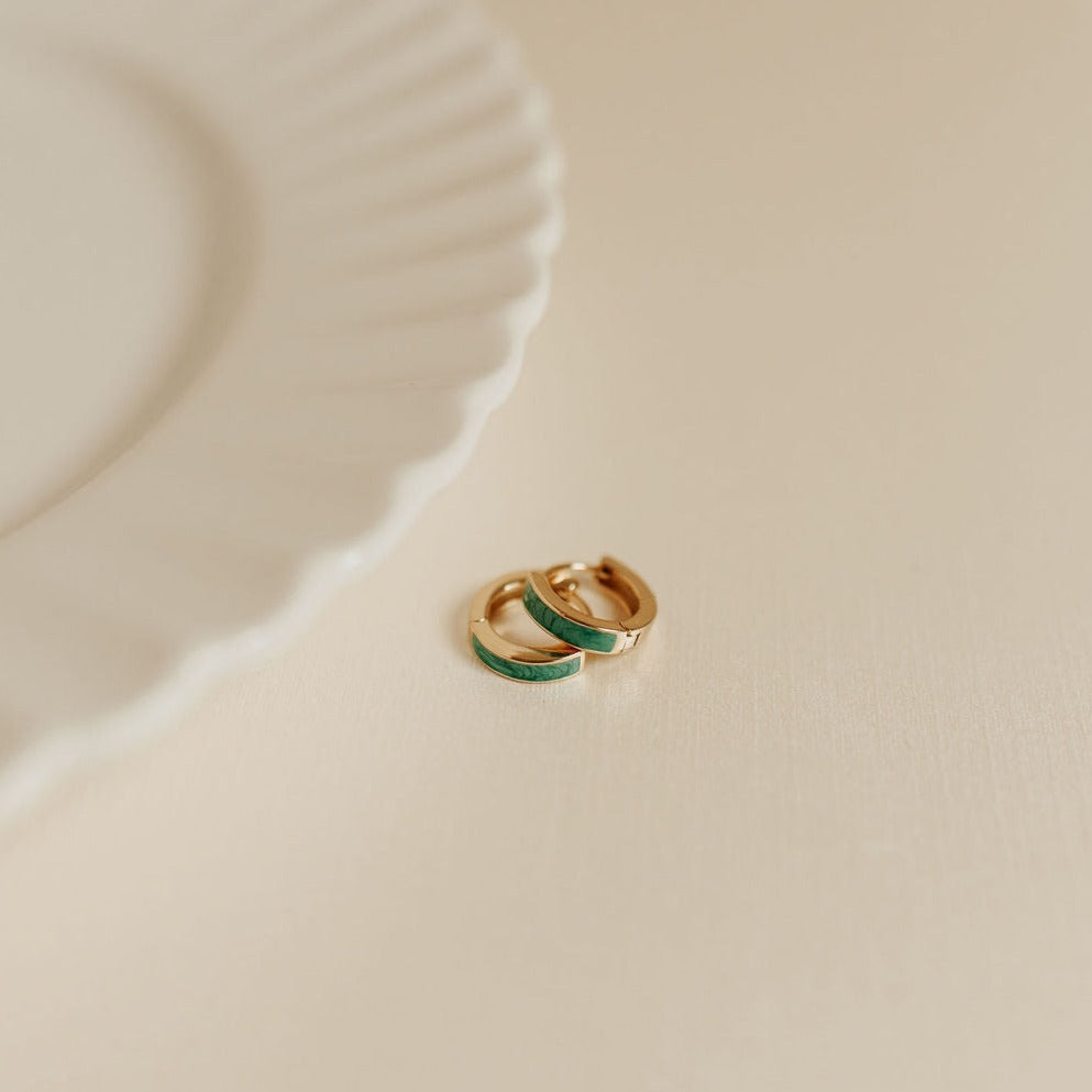 The AZ Turquoise Hoops are the perfect accessory for any outfit. Available in high quality sterling silver and gold vermeil, these huggies are hypoallergenic, good for sensitive skin, and wear and tarnish resistant.