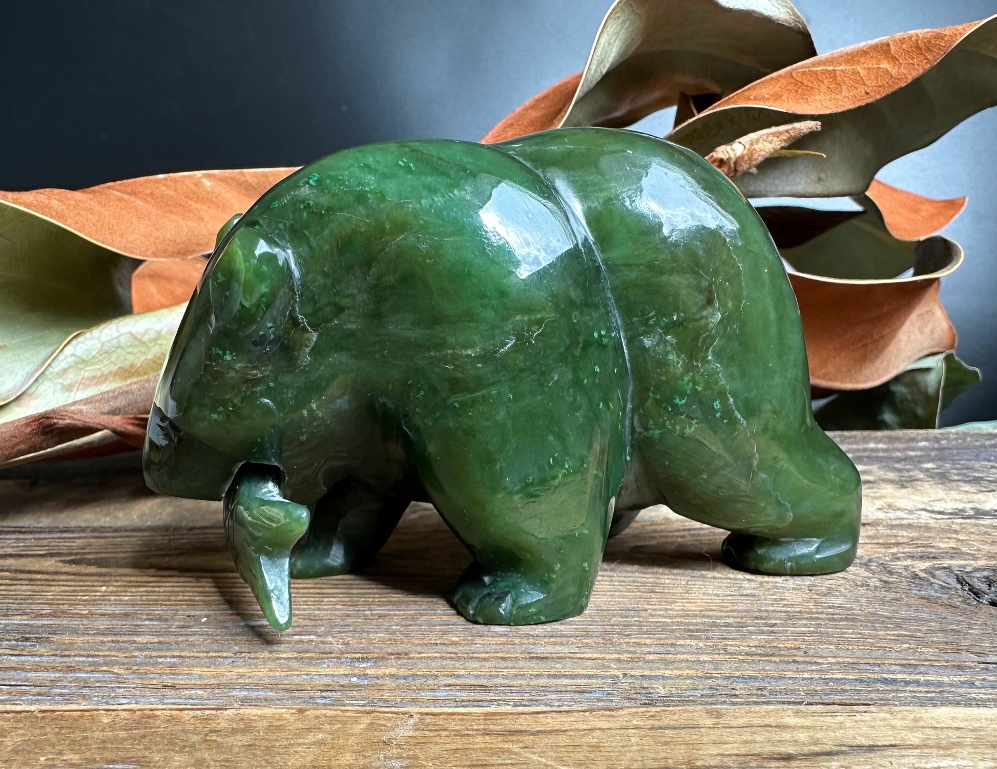 Jade Grizzly with Jade Fish, carved out of low-grade Canadian Jade