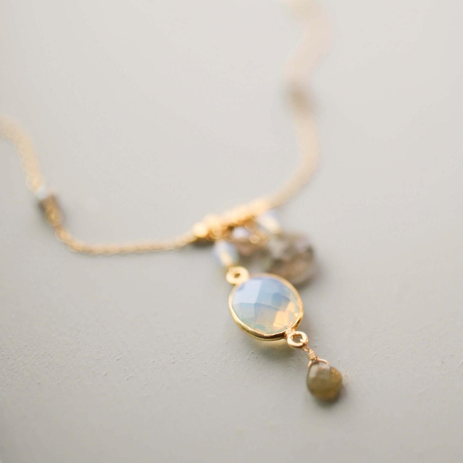 Choose from 5 bezel set gemstone options - Labradorite, Aqua Chalcedony, Blue Chalcedony, Smoky Quartz or Opal Quartz.