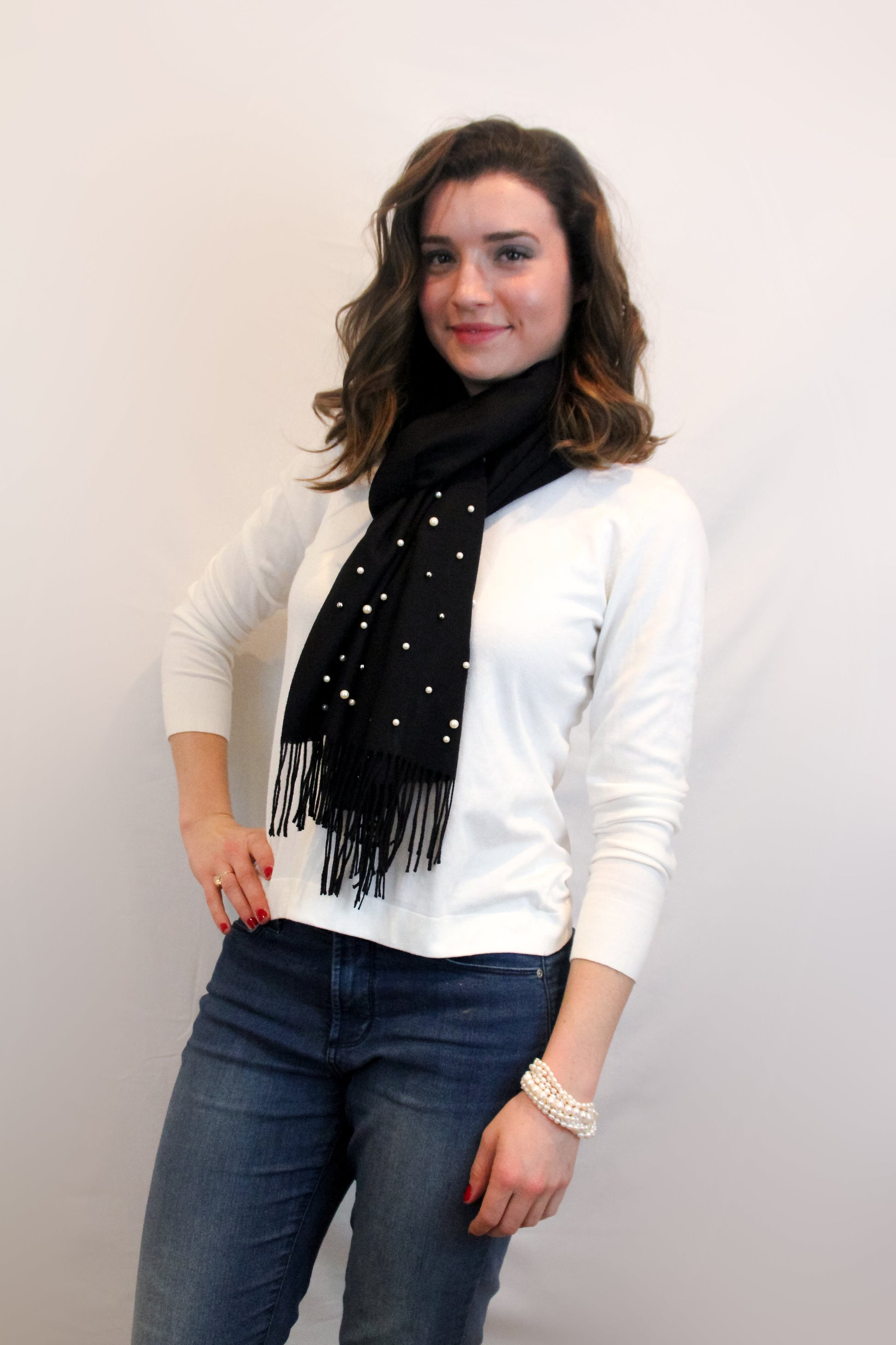 Black cashmere and pearl pashmina