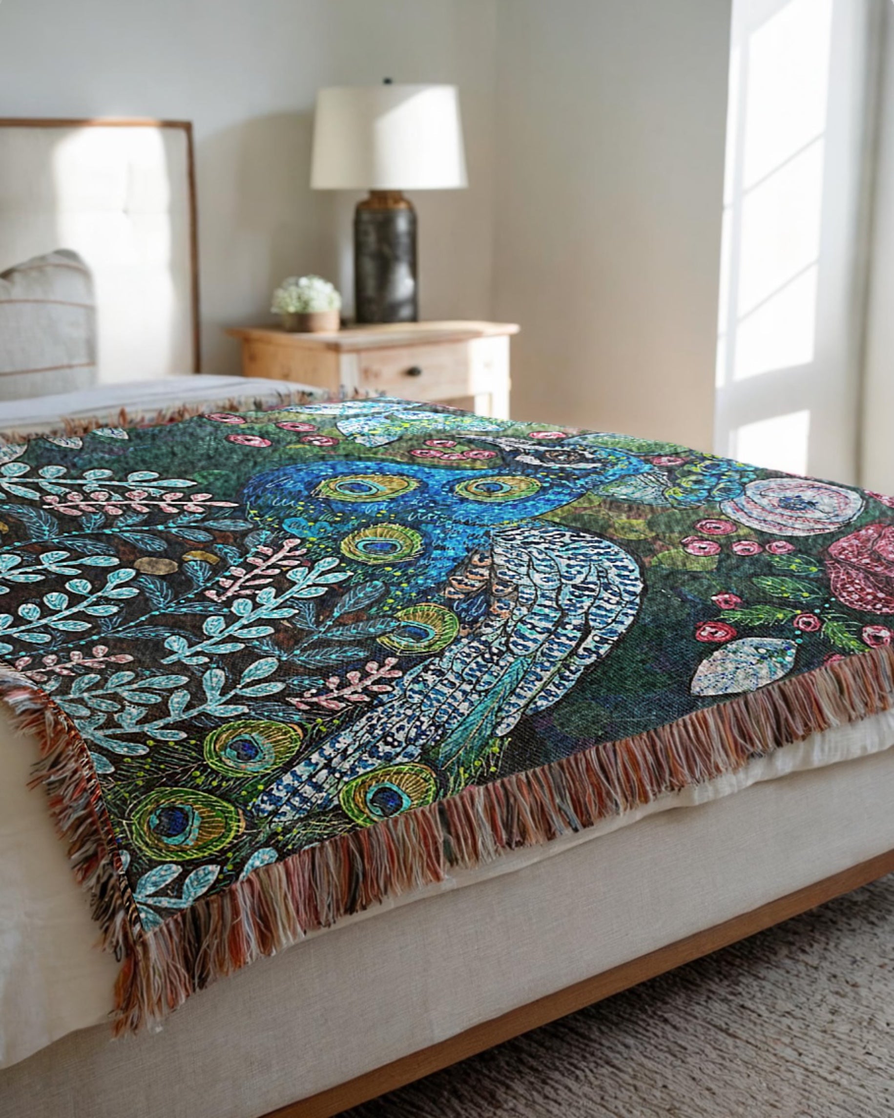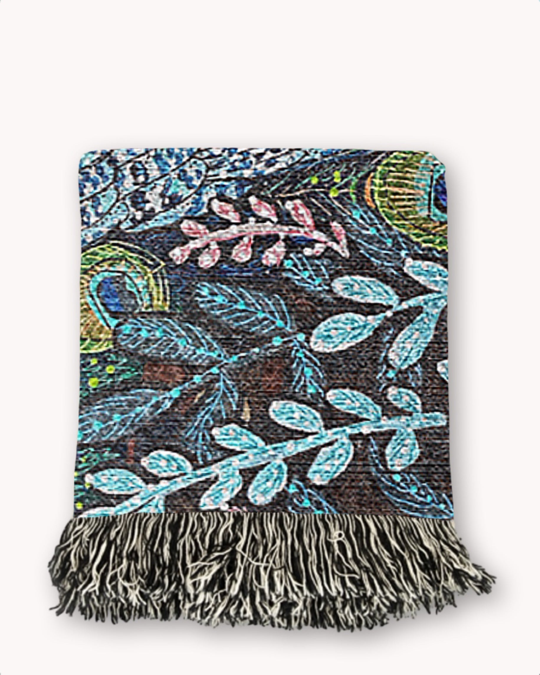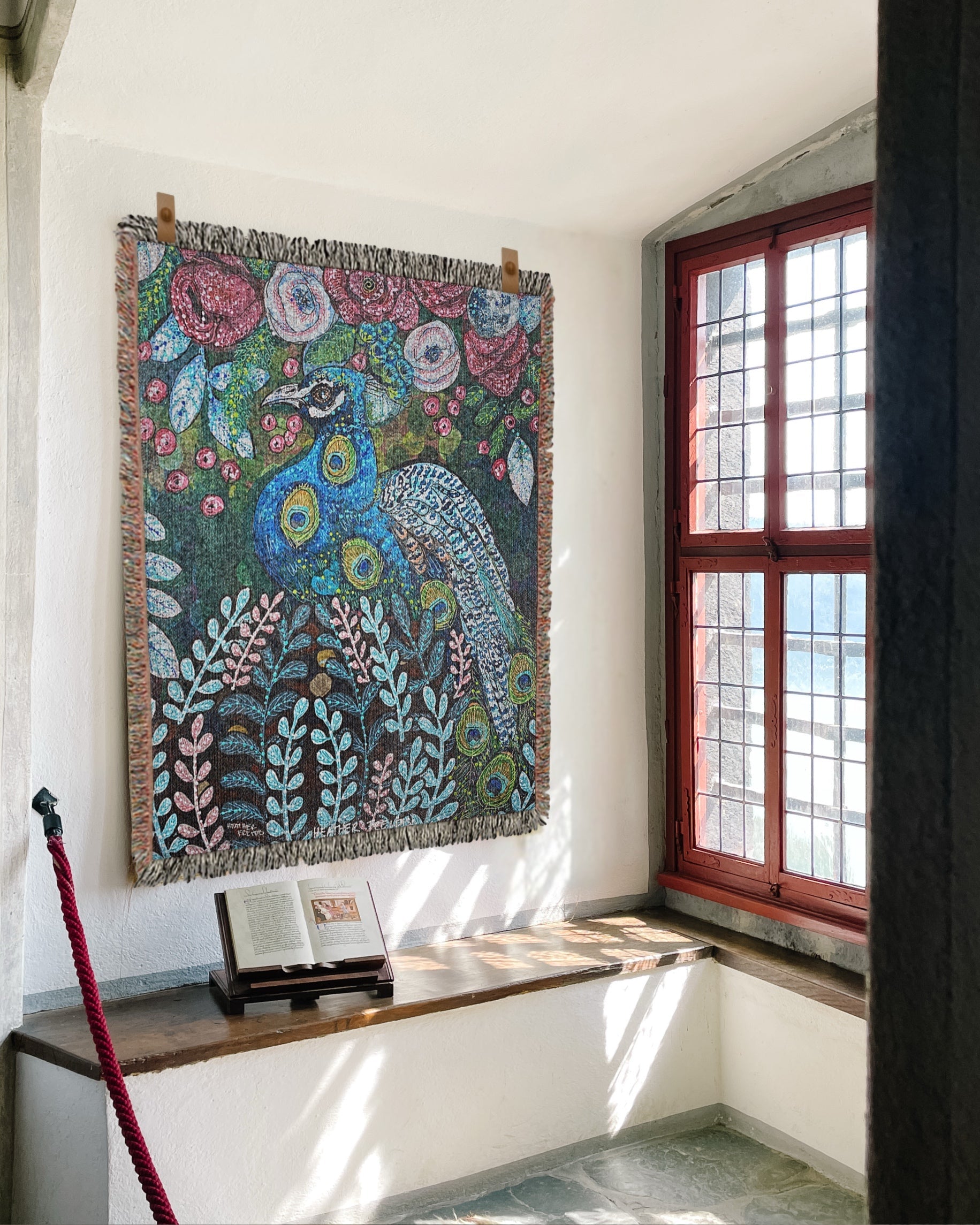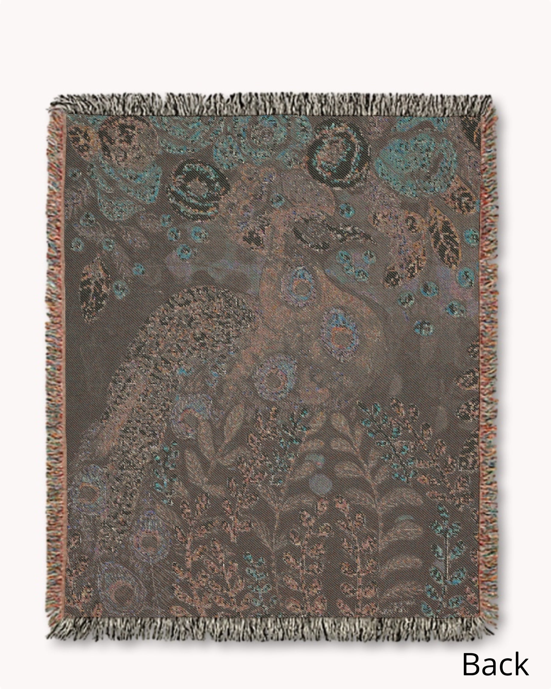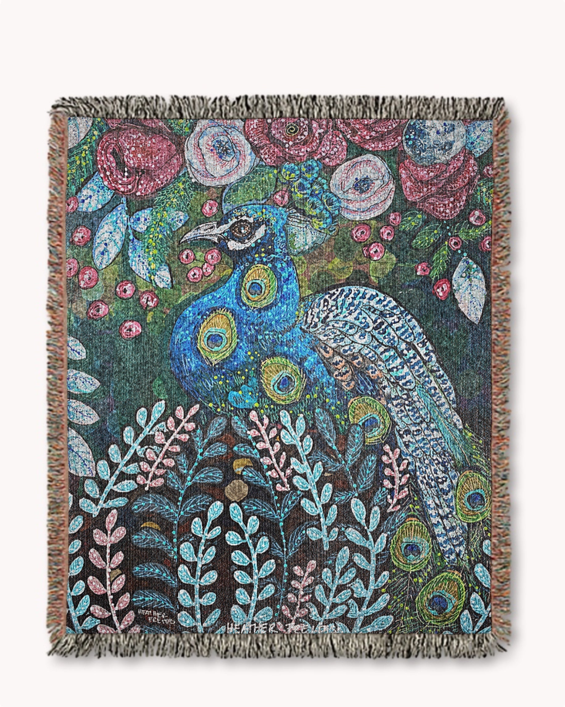 Woven with rich texture and timeless charm, this jacquard throw features original artwork by Heather Freitas, transformed into a keepsake meant to be lived with and loved. Whether folded at the foot of your bed, draped over a favorite chair, or hung as a tapestry, it adds a touch of nostalgia to your space—like something passed down, or discovered on a magical antique shop afternoon. A cozy companion for quiet days, storybook evenings, and slow, beautiful living.
