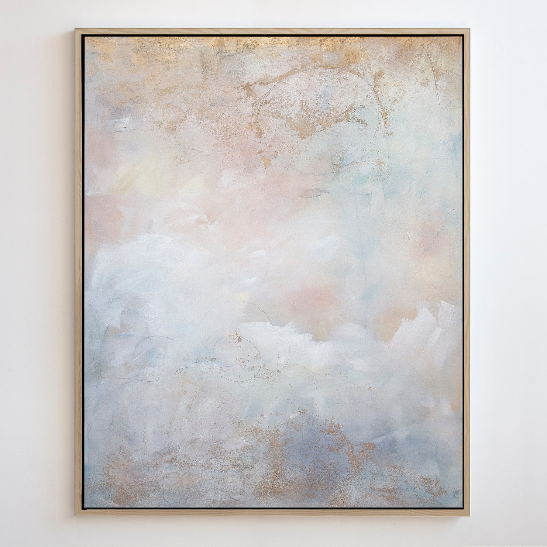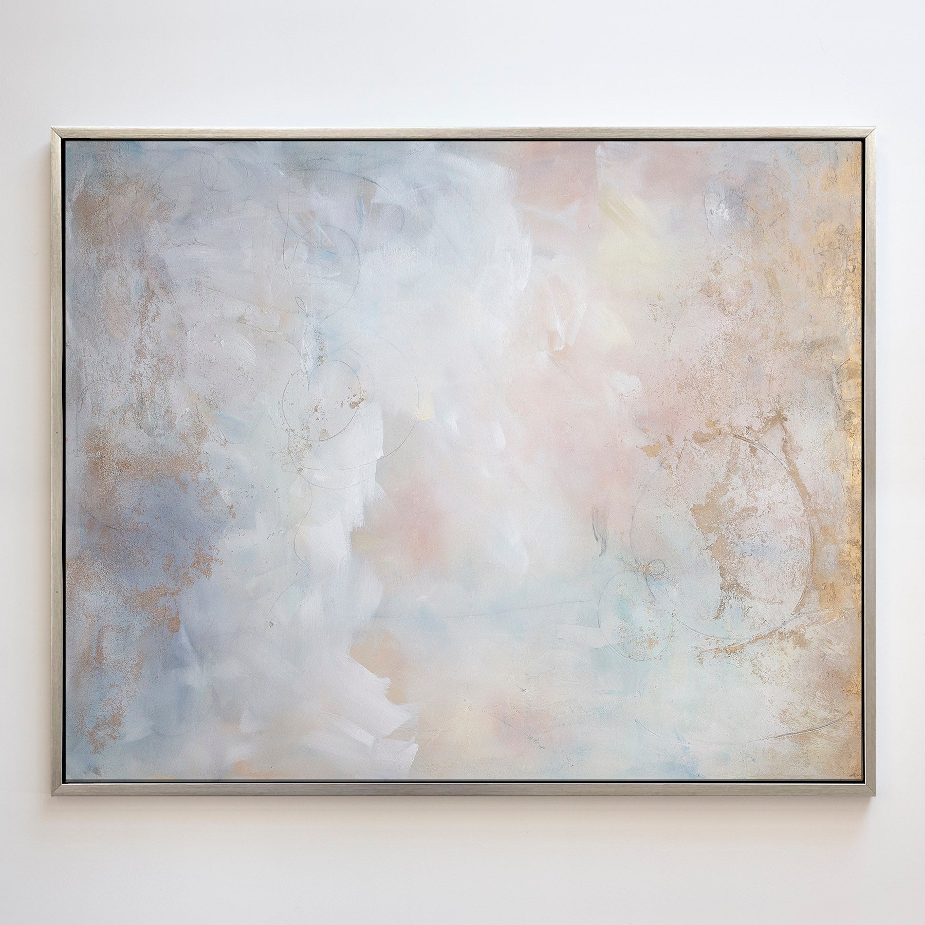 The soft color palette and fluid brushwork invite the viewer to escape into the ethereal, dream-like surroundings of “Blushing Breeze.”