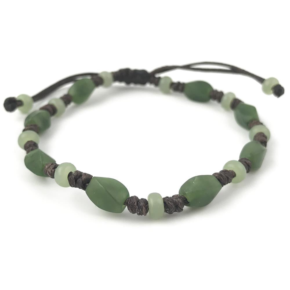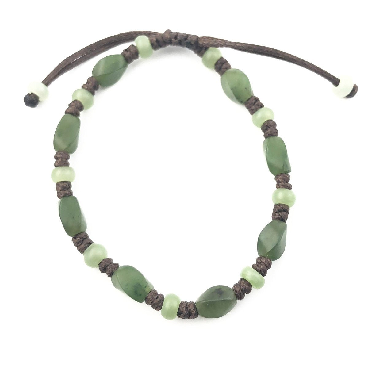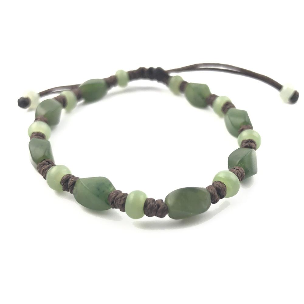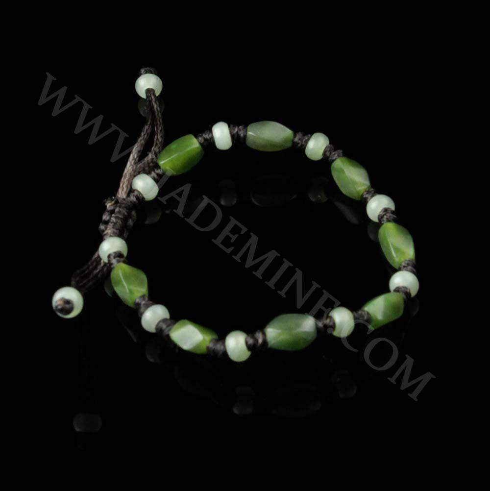 Adjustable Jade bracelet measures 6 to 8.5 inches. Canadian Jade with light Siberian Jade beads, matte polish.
