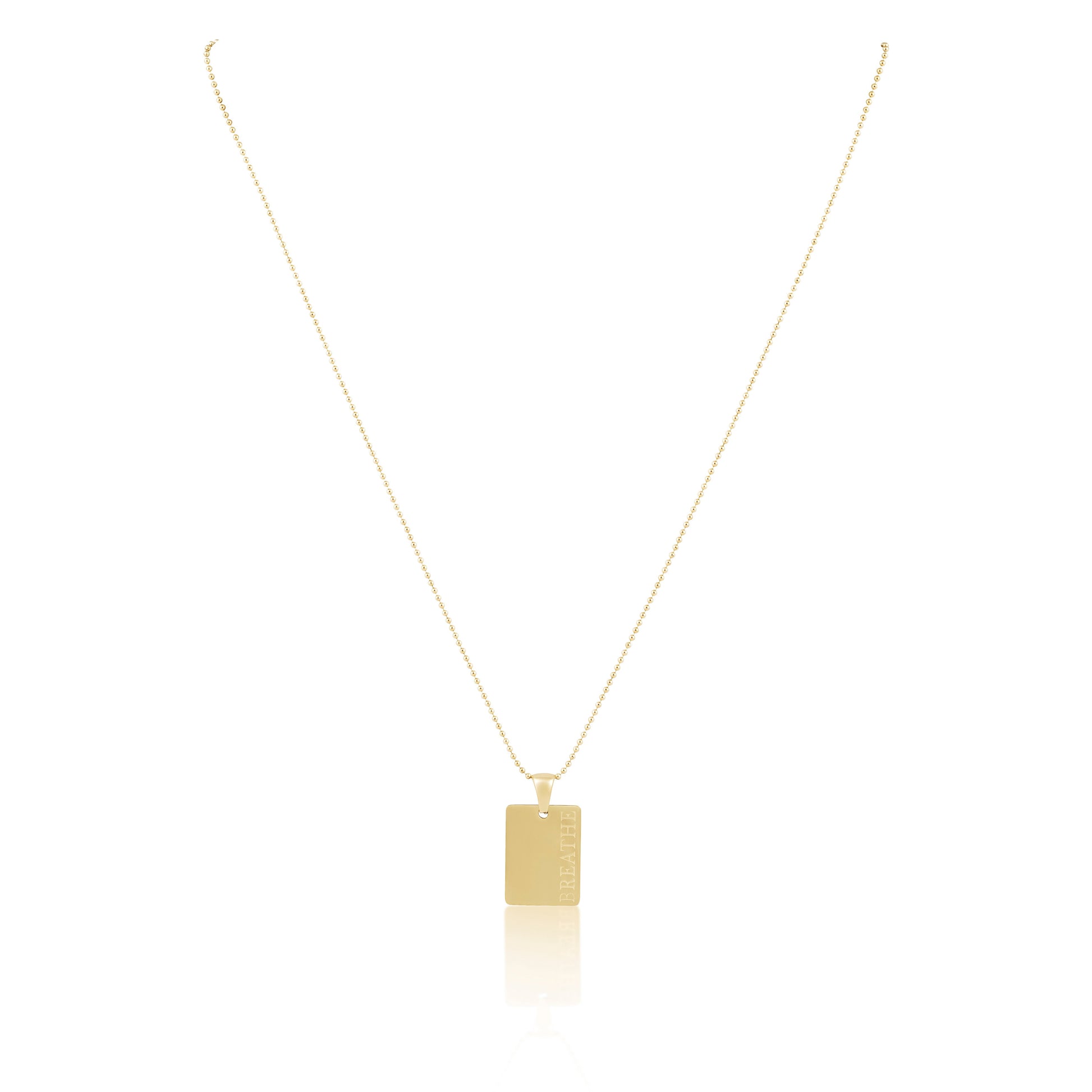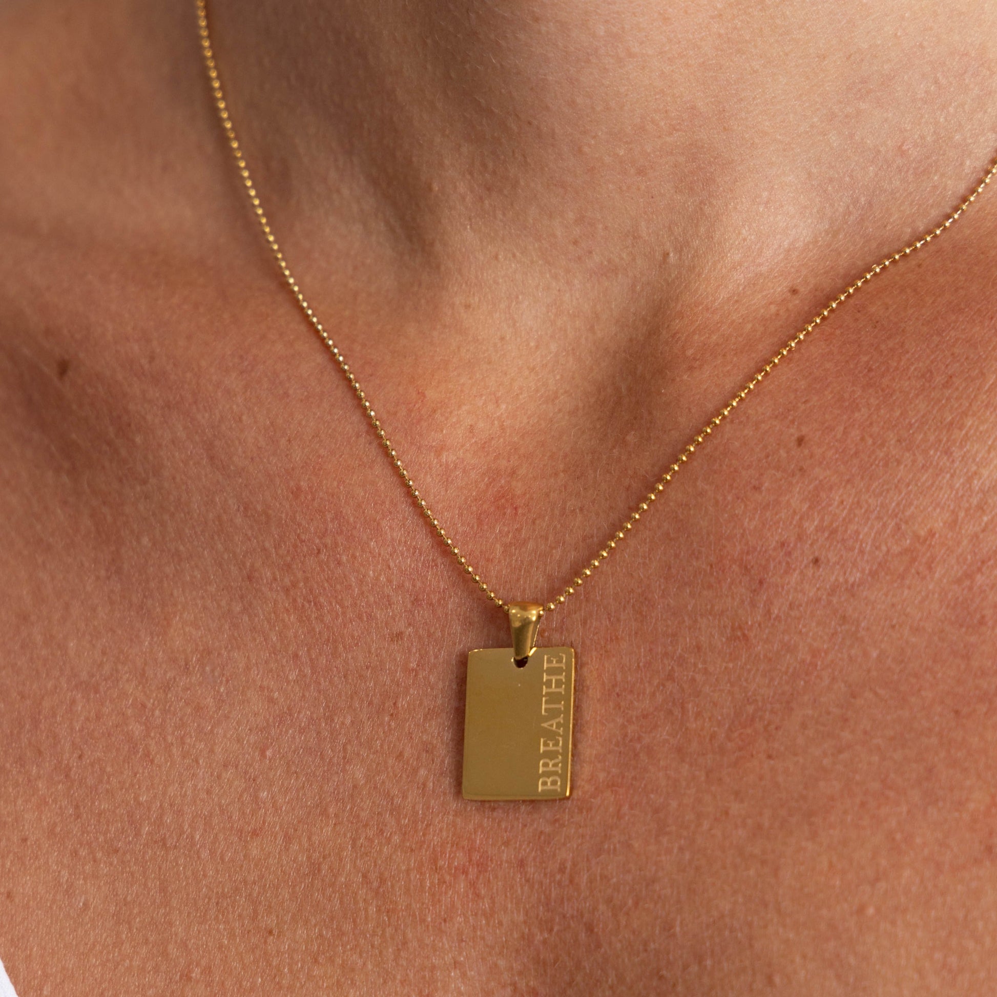 This Breathe Necklace is more than your average jewelry - it's a reminder to take a moment and relax. Crafted from gold, this beautiful pendant adds a touch of sophistication to your look while helping you breathe easy.