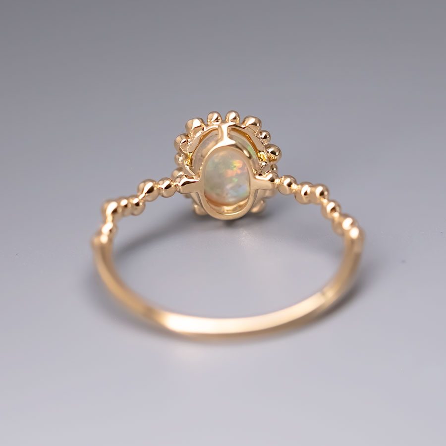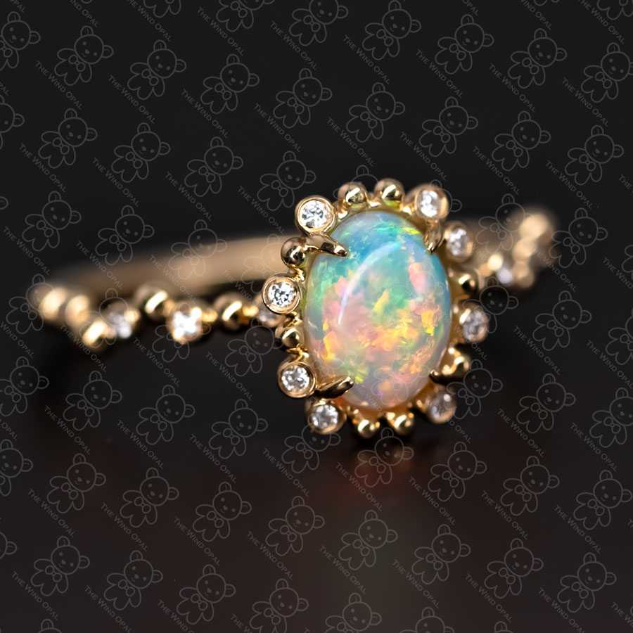 Bubble Tea Design Australian Opal Diamond Engagement Ring 18K Yellow Gold