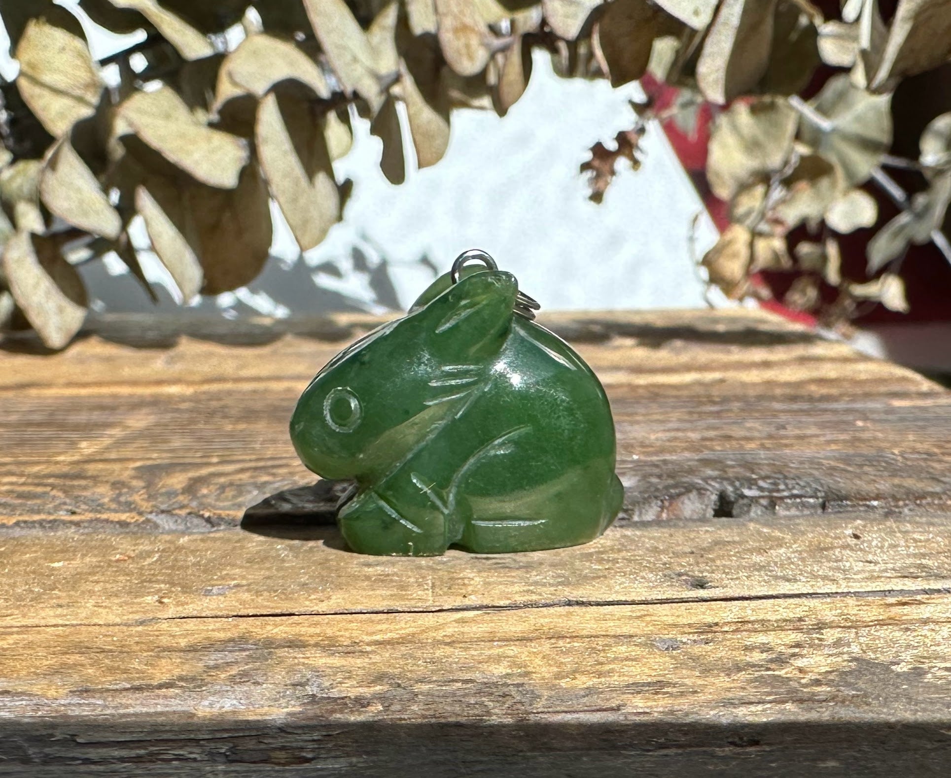 Canadian Nephrite Jade Bunny Pendant - Measures approximately 1" long