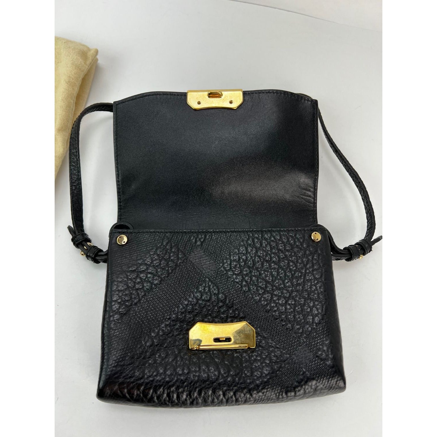 Burberry Signature Grain Leather Check Embossed Langley Black Crossbody
