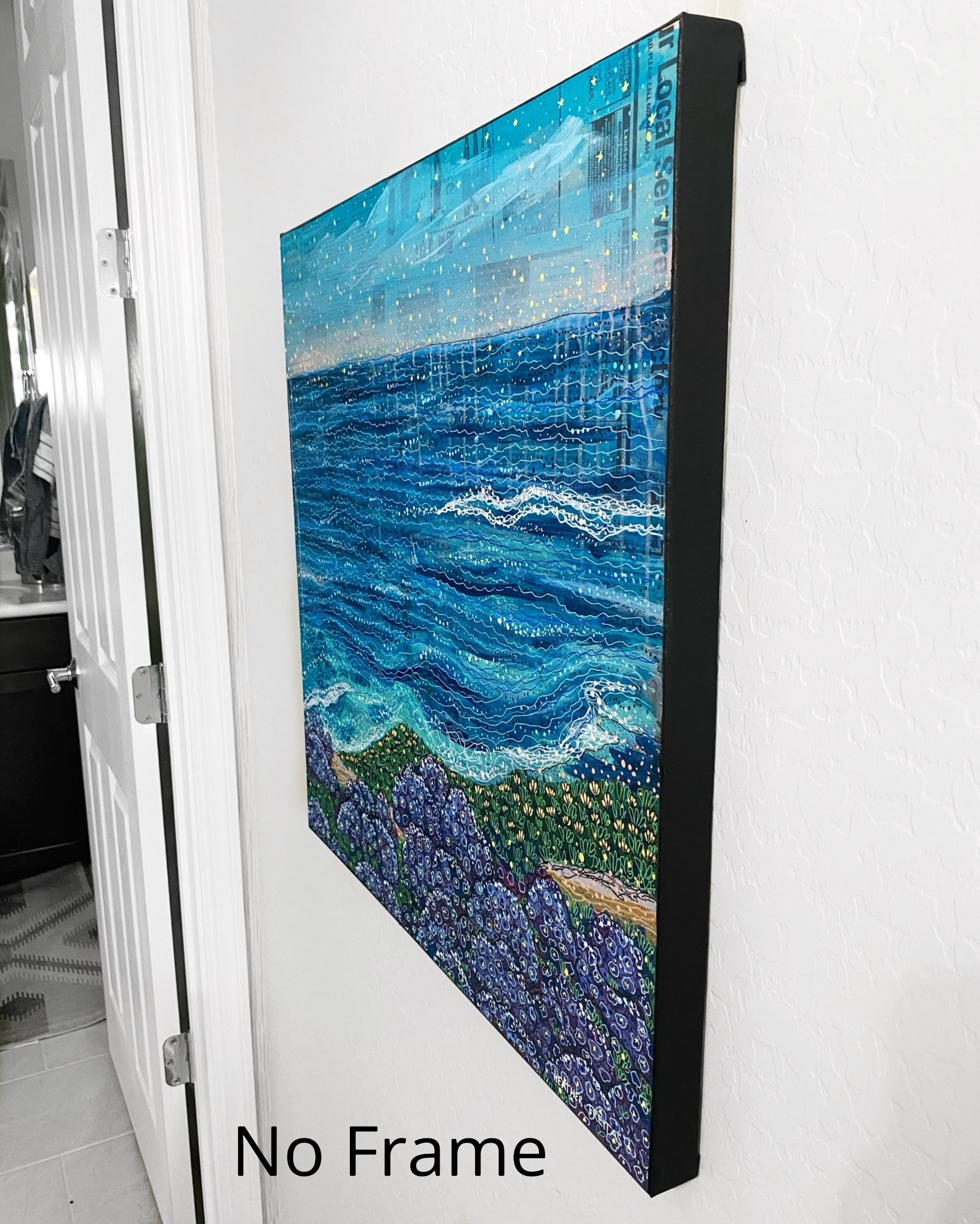 This original painting measures 24 x 24 inches and is mixed media on a deep edge gallery wrapped canvas.
