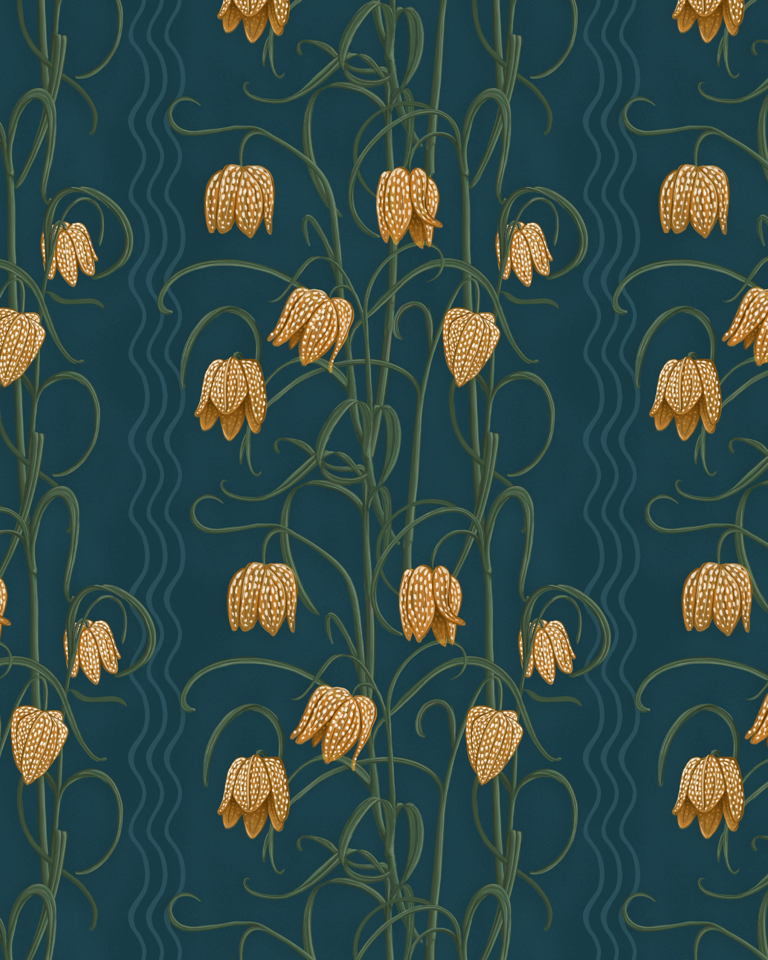 Enhance your living space with the unique blend of dark blue, green and goldenrod tones. The Campanas Wallpaper features a modern twist on classic floral patterns and stripes, illustrated by Samantha Santana. Not only does this wallpaper add visual appeal, it's also incredibly easy to install. Bring beauty and convenience to your home decor with Campanas Wallpaper.