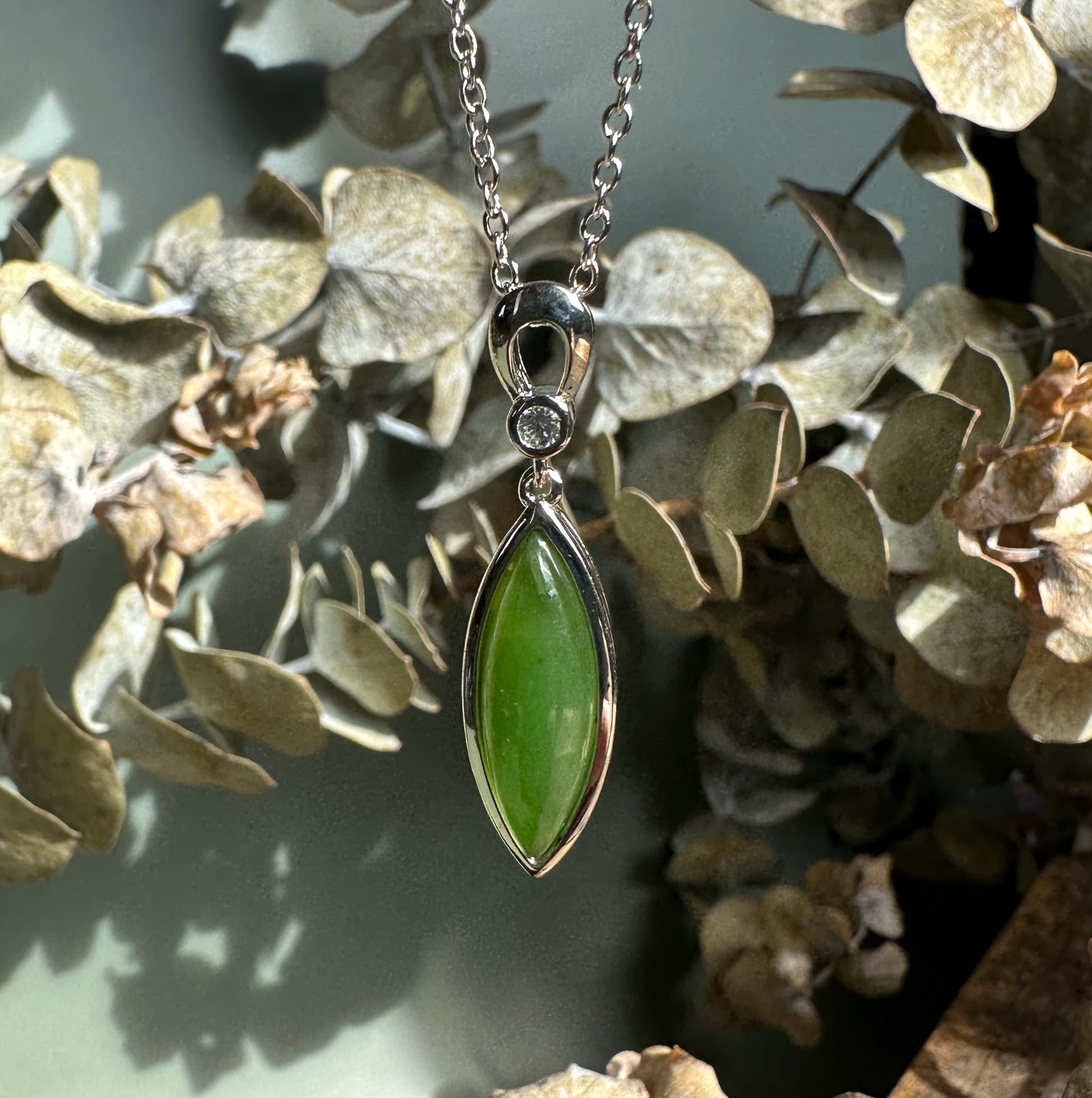 Natural Canadian Nephrite Jade and Sterling Silver pendant.