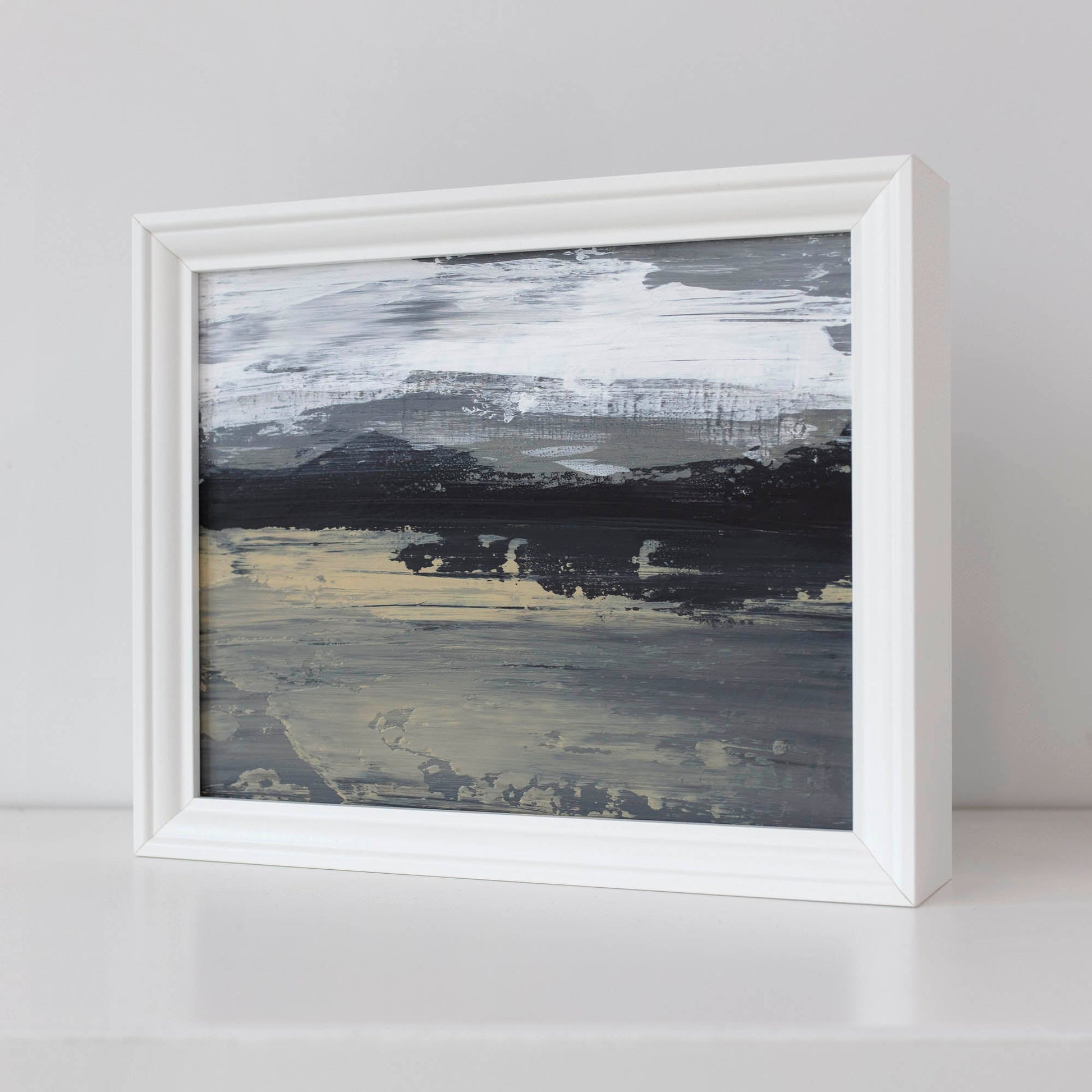 Created on clear plexi and framed in a deep white frame. Artist signature on back. Comes ready to hang or display on a shelf.