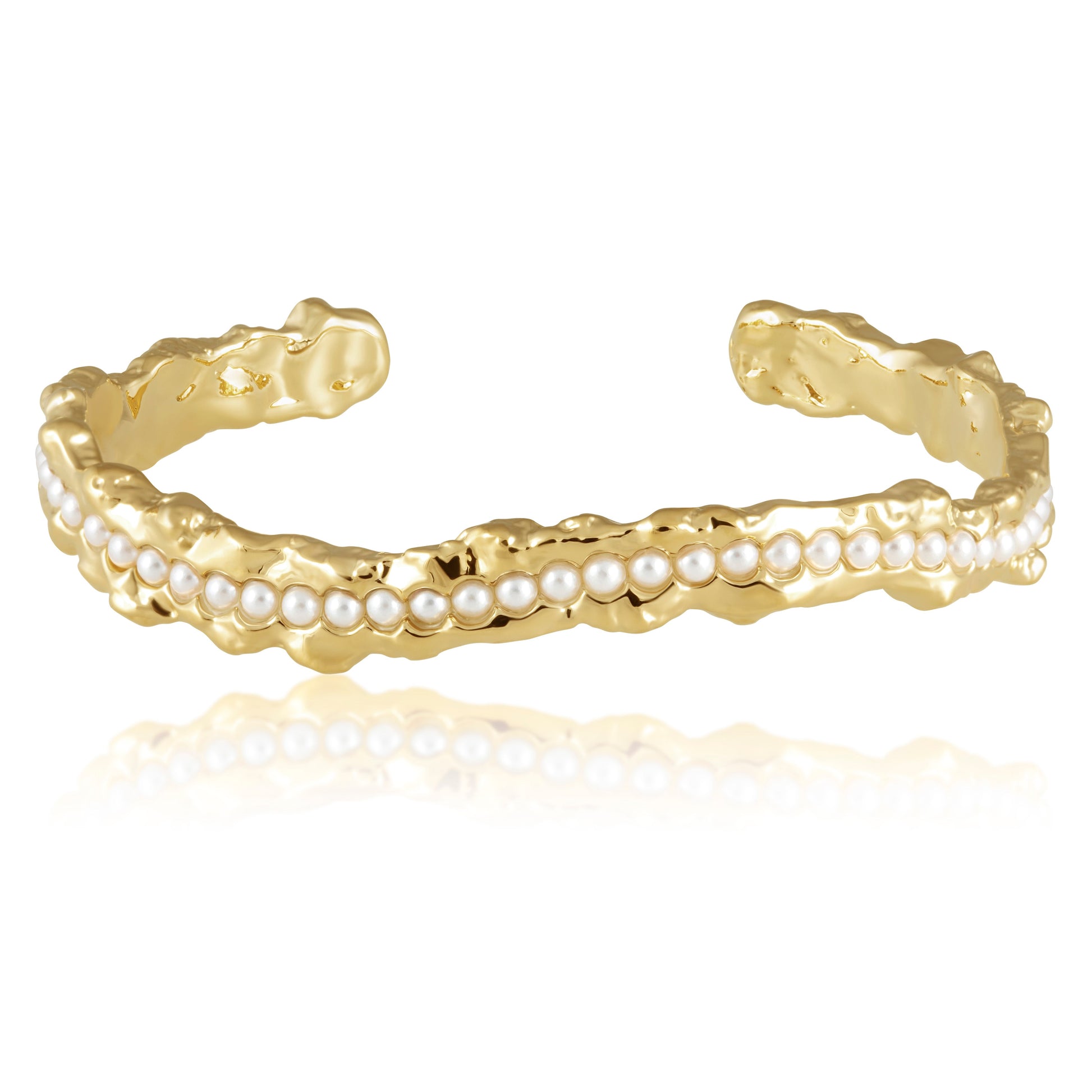 Indulge in luxury with our Catalina Pearl Cuff. The hammered pearl cuff adds a touch of elegance to any outfit, making you feel chic and sophisticated. Elevate your style with this exclusive piece that is sure to turn heads.