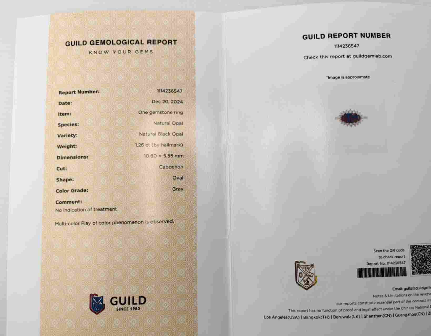 Guild Gemstone Certification Exquisite Australian Black Opal Halo Diamond Engagement Ring 18K Yellow Gold.
