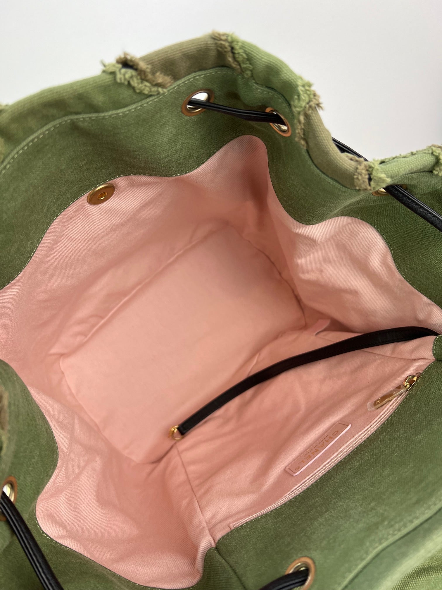 CHANEL Cruise Coco Cuba Collection Chevron Patchwork Khaki Green Backpack