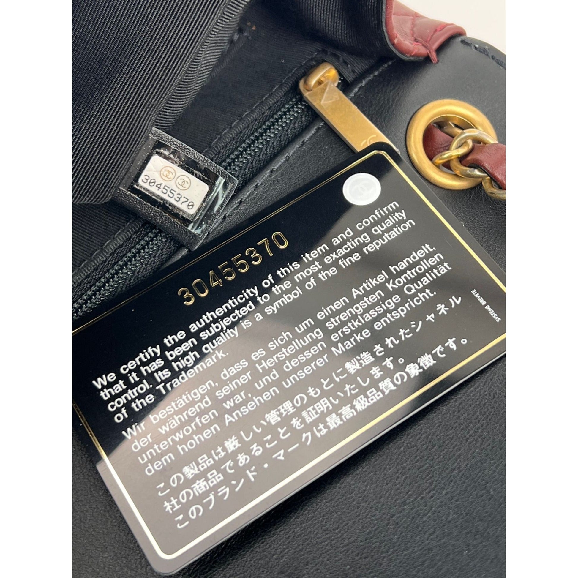 Chanel Calfskin Quilted Strap into Flap Black Burgundy Shoulder Bag