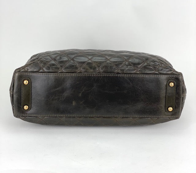 CHANEL Glazed Calfskin Shagreen Large Bindi CC Grey Tote Hand Bag