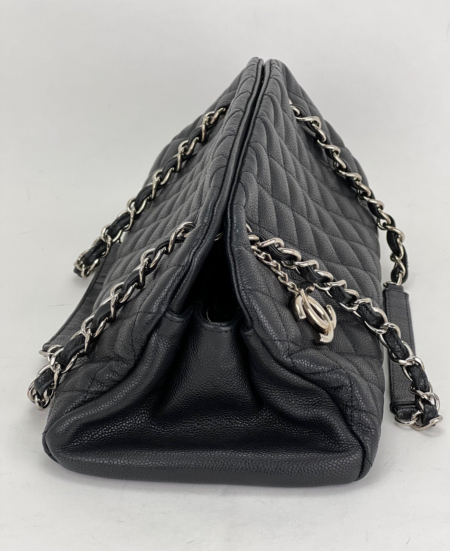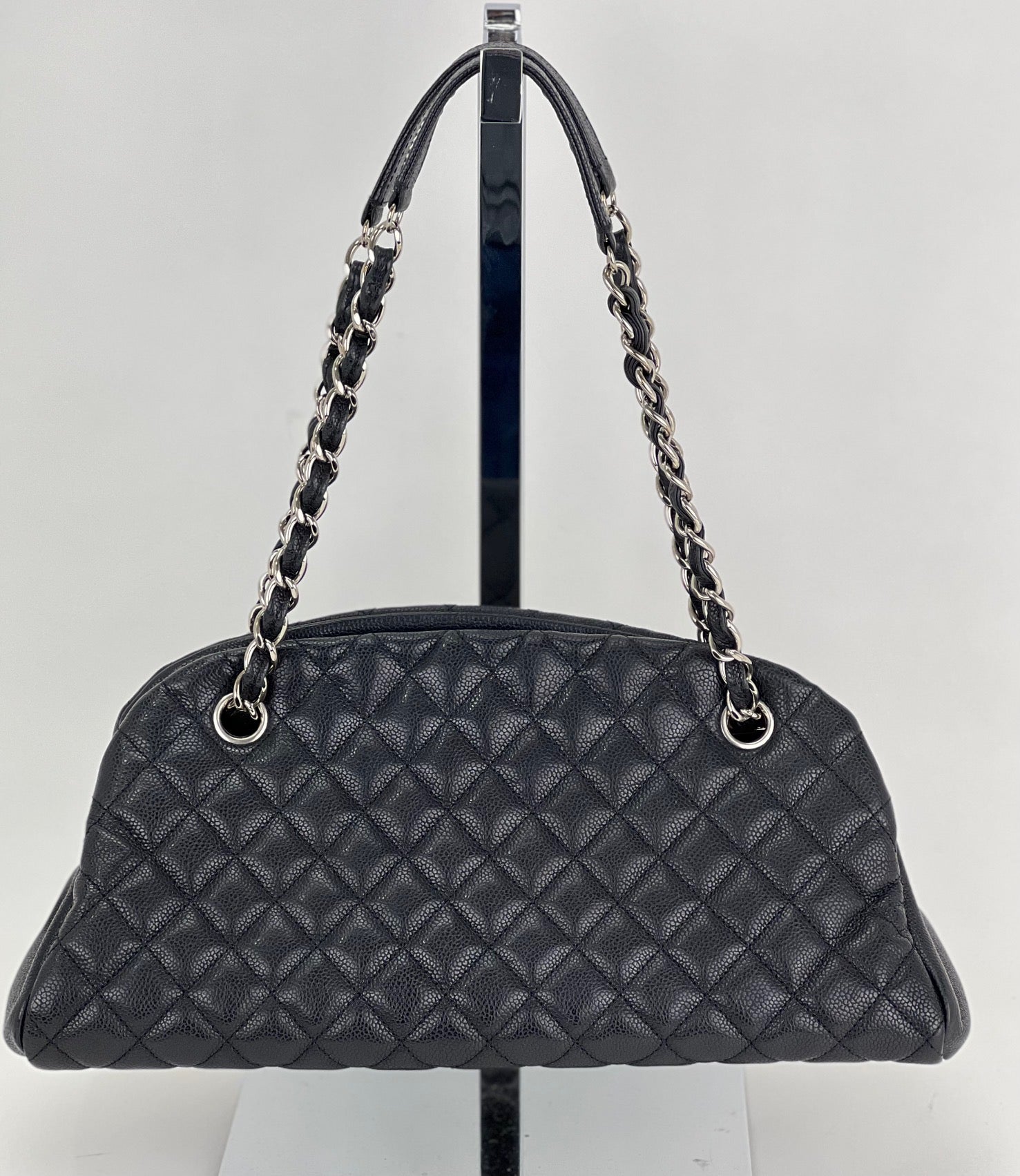 CHANEL Just Mademoiselle Quilted Caviar Black Bowling Shoulder Bag