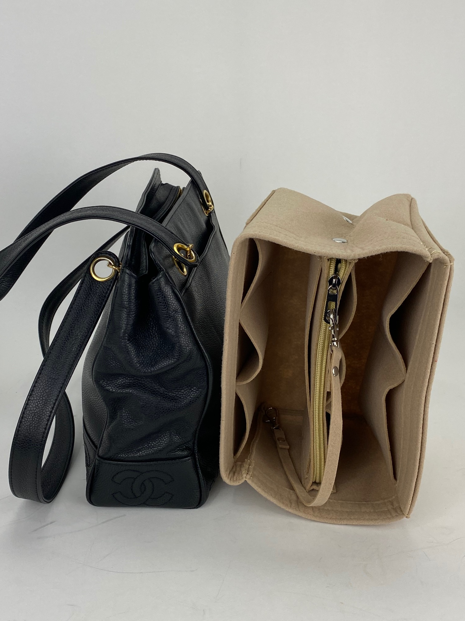 CHANEL Vintage Black Caviar Leather CC Zip Tote Shoulder Bag w/added insert Pre owned