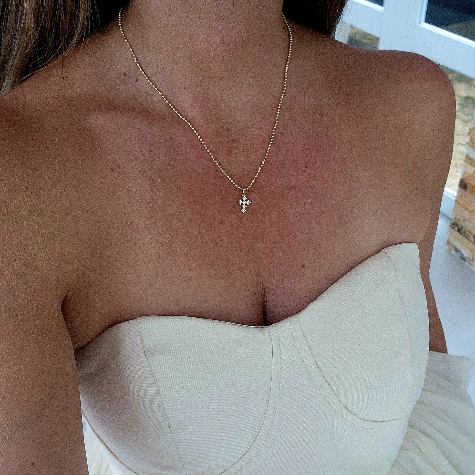 Indulge in the ultimate luxury with CHARME, our chic cross necklace crafted with 18k gold-filled hypoallergenic materials. Elevate your style with its classy and chic design, perfect for any occasion. Experience the charm and elegance of CHARME today.