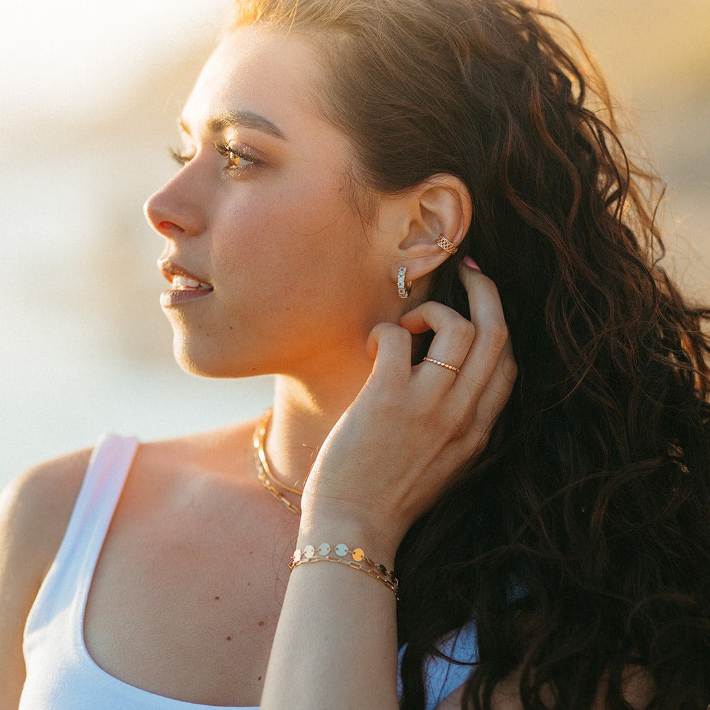 The Chloe Coin Bracelet is the perfect piece to stack with other bracelet or wear as a stand alone accessory. She’s 18k gold filled, tarnish and wear resistant, and made to last. Hypoallergenic and nickel free, this unique and dainty chain is the perfect accessory all year long. The bracelet can also be shortened by using the clasp on a shorter link.