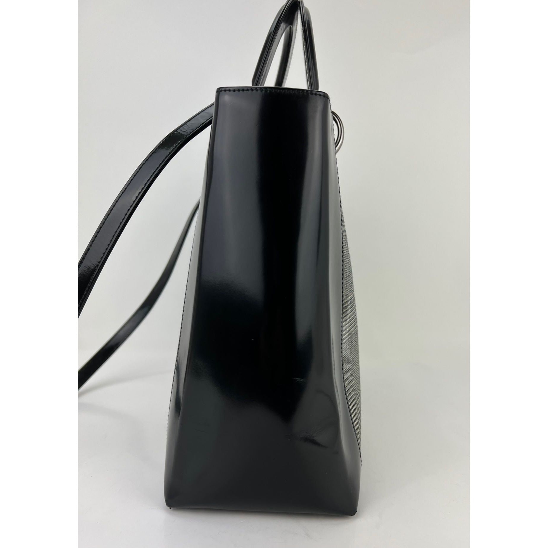 Christian Dior Large Lady Black Patent Leather Canvas Hand Bag
