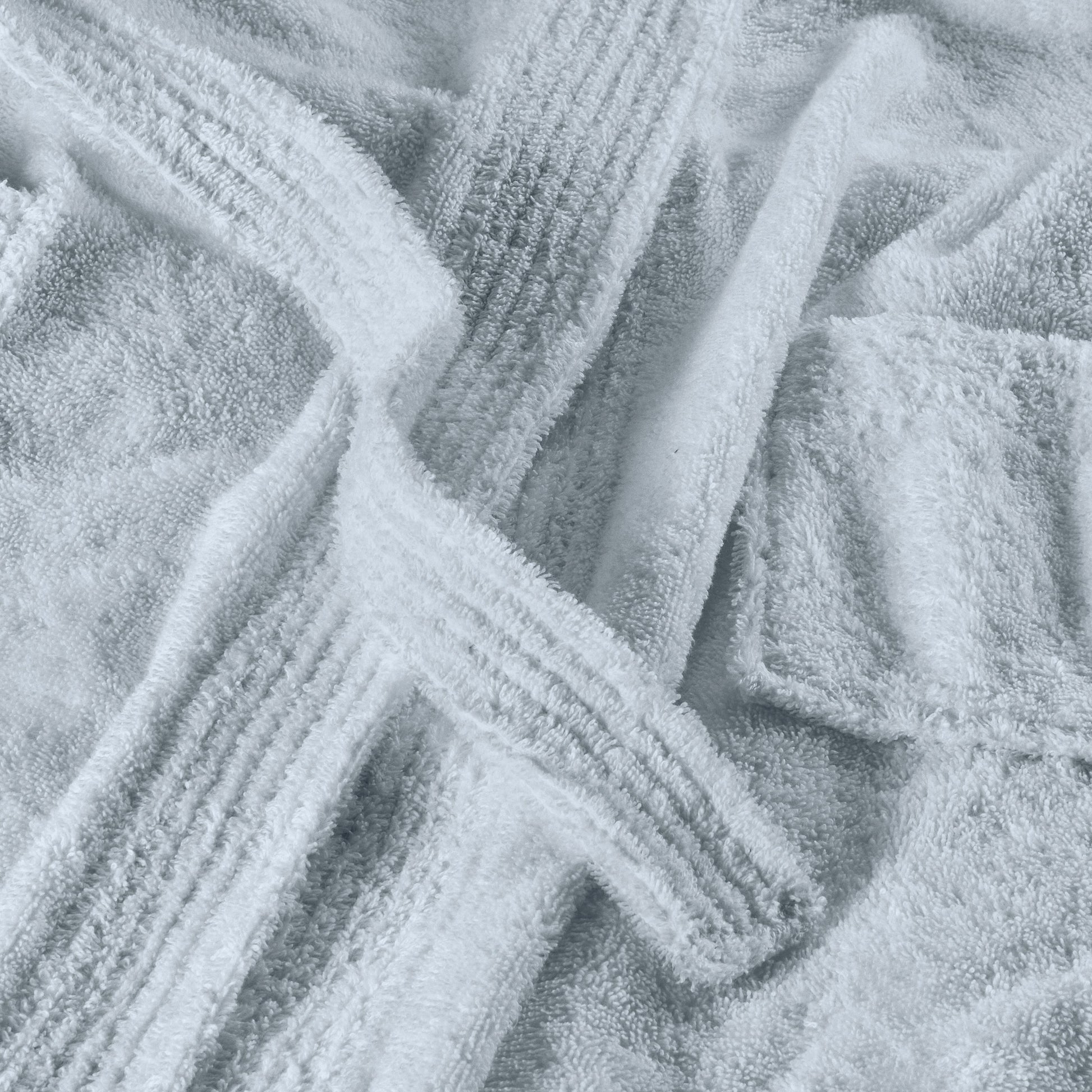 Our Clean Design Home® plush terry cotton bath robe for youth has a hood, boasts a stylish shawl collar, wide long sleeves and oversized cuffs for a soft, comforting absorbency in low-lint terry construction. Oversized pockets with convenient self-tie belt closure. Four color options: blue, pink, white, grey.