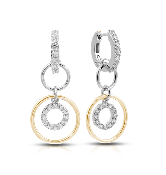 Silver and 24K Yellow Gold Vermeil: White stones pave-set into 24K yellow gold vermeil, nickel allergy-free, 925 sterling silver.