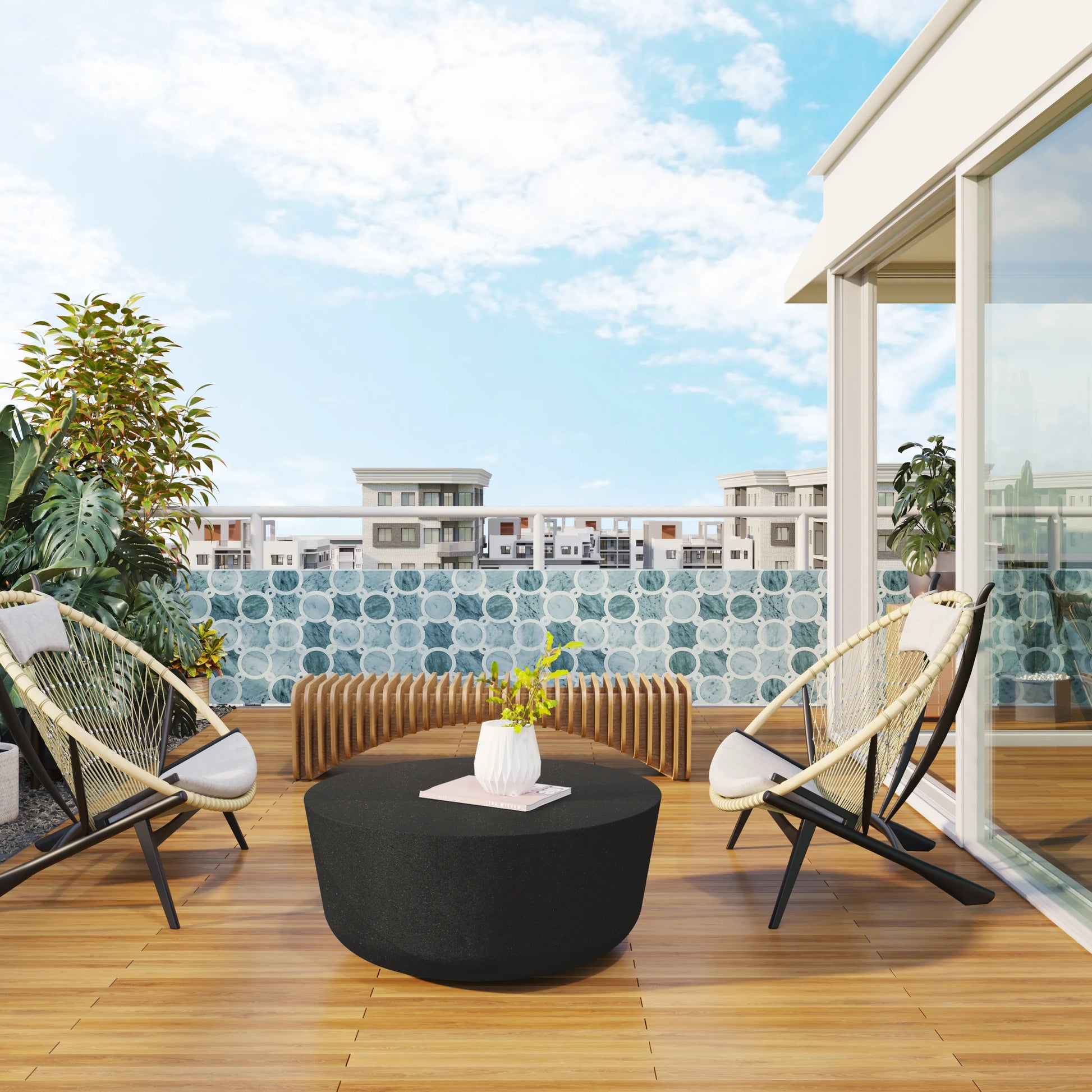 Finished with a smooth surface and available in two organic, fade-resistant designer colors, this concrete table seamlessly blends functionality with modern aesthetics. Each piece is skillfully handcrafted in Tecate, Mexico, using environmentally friendly processes. Its unique StampShield™ UV coating offers protection against the elements, making it perfect for both indoor and outdoor use.
