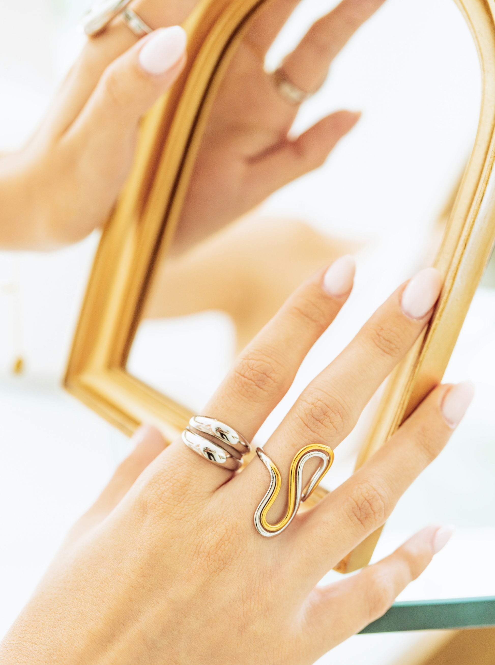 Embrace the curve with COVE! Our adjustable open ring is made of hypoallergenic 316 stainless steel for ultimate comfort.
