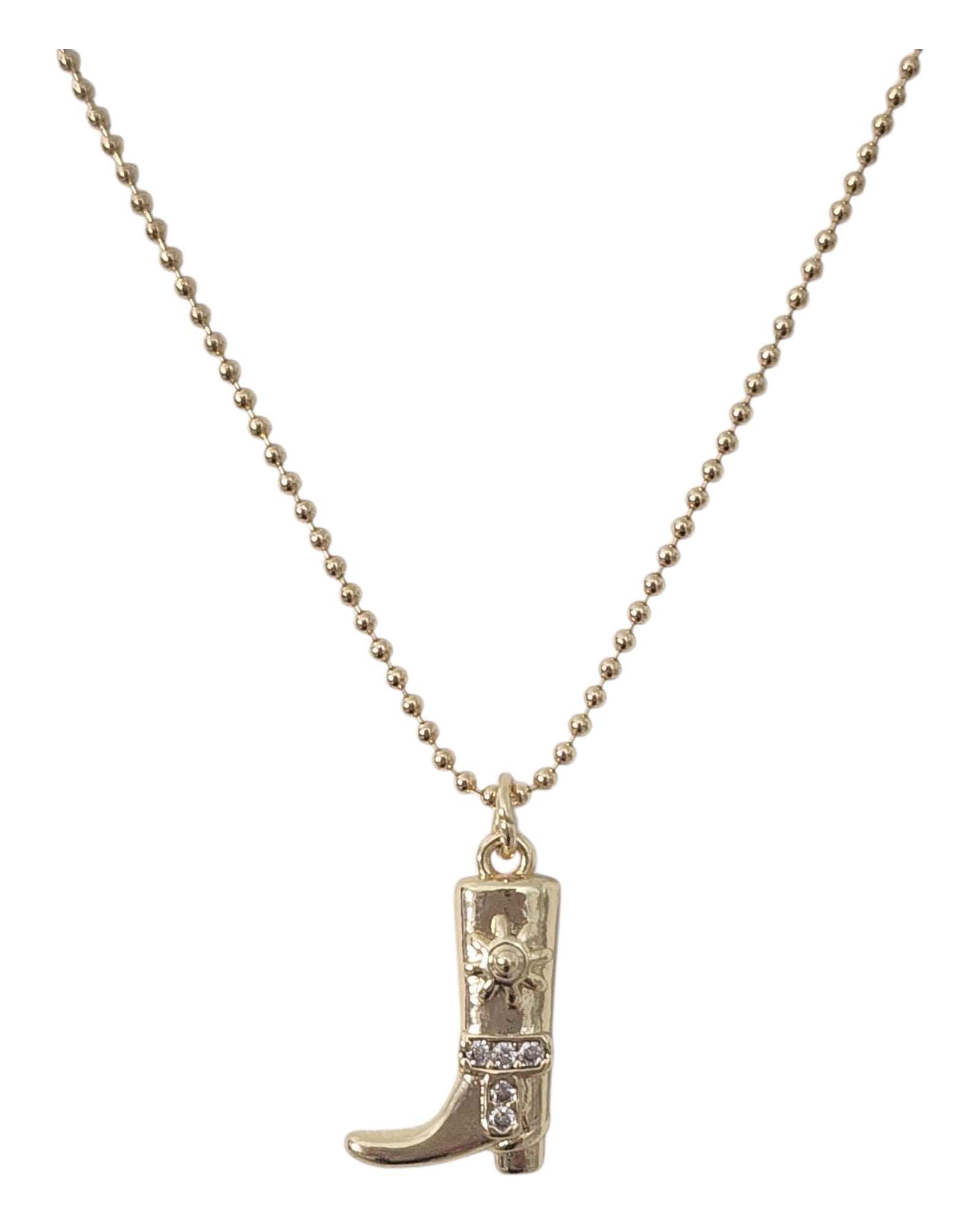 Add a touch of western charm to your look with this playful 18" hypoallergenic cowboy charm necklace. Crafted from 18k gold-filled material, it offers lasting shine without irritating sensitive skin. Perfect for those who love a bit of cowboy spirit in their style!