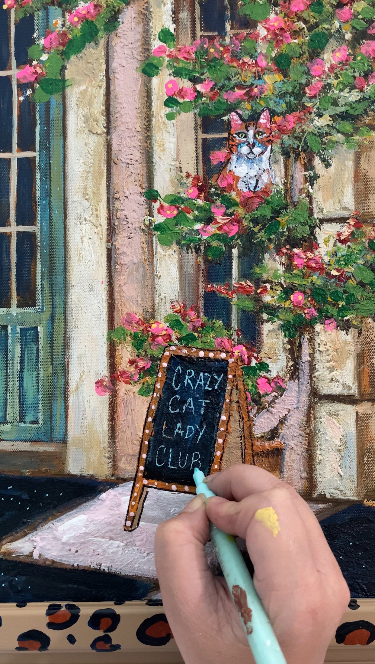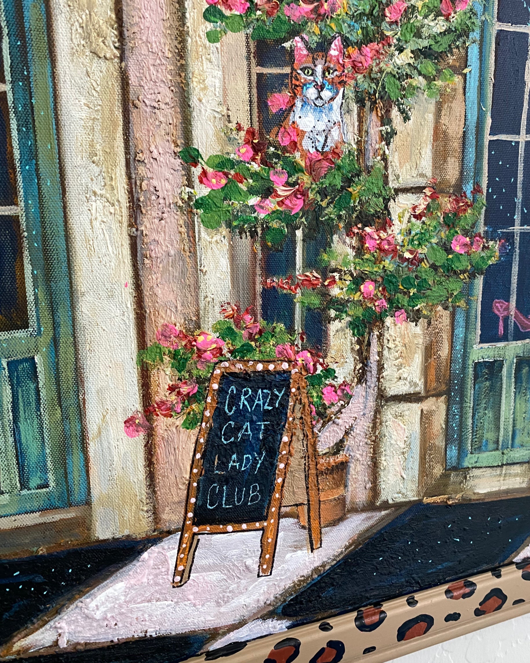 Crazy Cat Lady Club ( Original Painting - Painted Thrifted Painting )