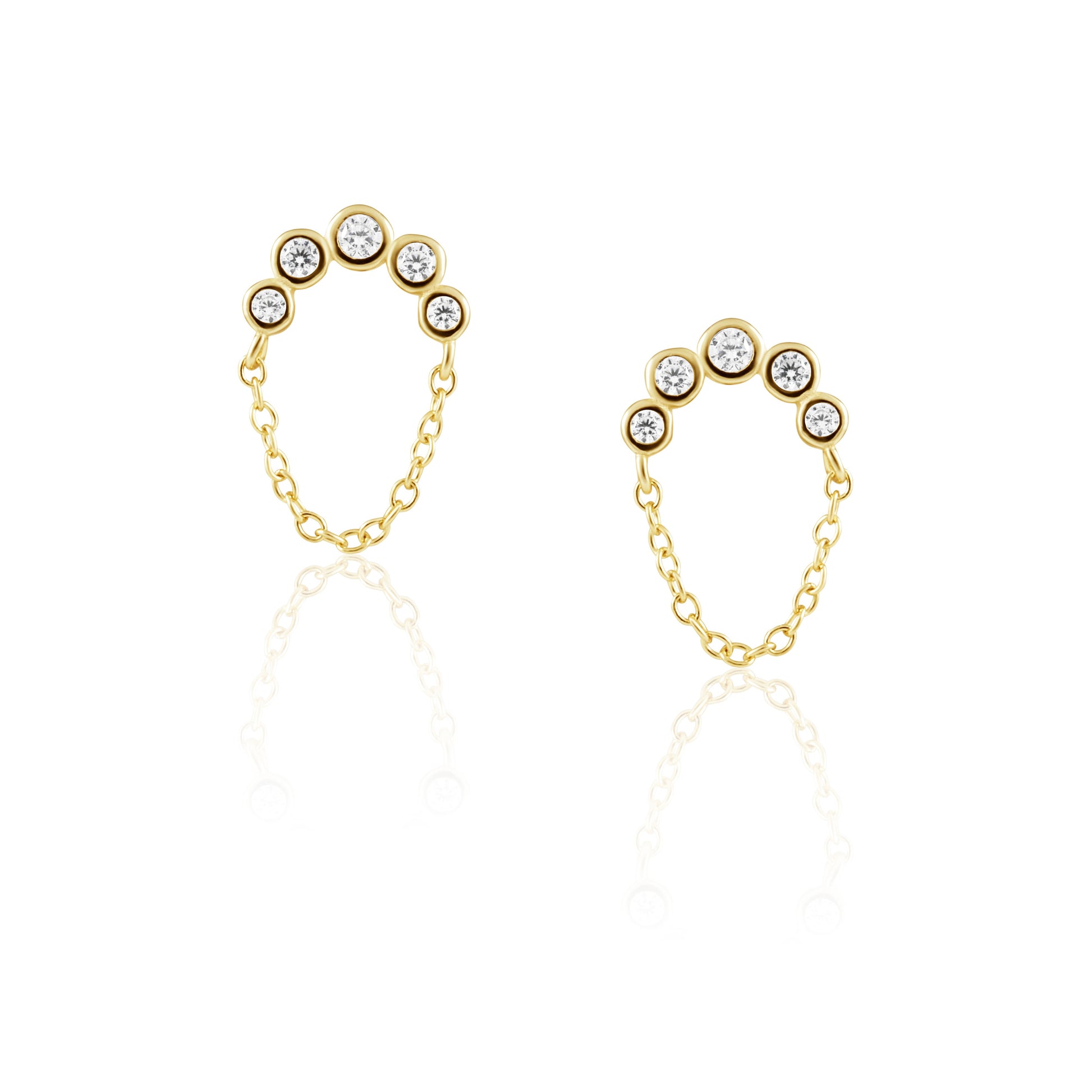 Adorn your ears with the Crescent Chain CZ Studs, featuring a mini crescent covered in CZ stones and a beautiful chain detailing to add a little bit of edge to your look.