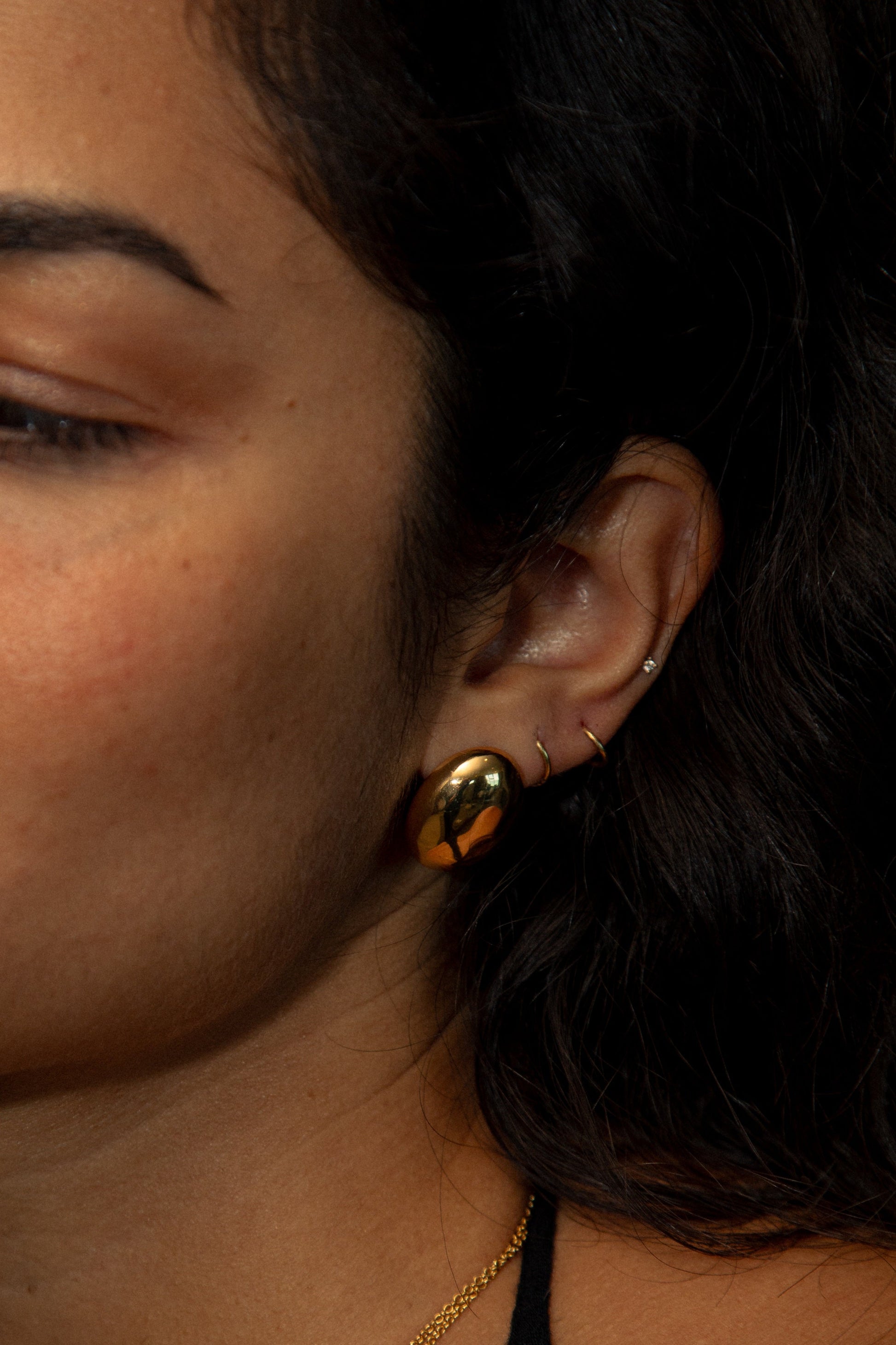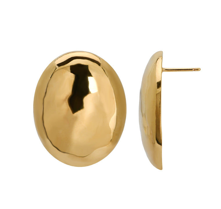 Expertly crafted with a timeless design, DANIELA earrings are perfect for any occasion. Made with hypoallergenic 18K gold-filled material, these statement stud earrings feature a slightly hammered, dome puffed oval shape for a unique and elegant look. Enjoy the benefits of both style and comfort with DANIELA.