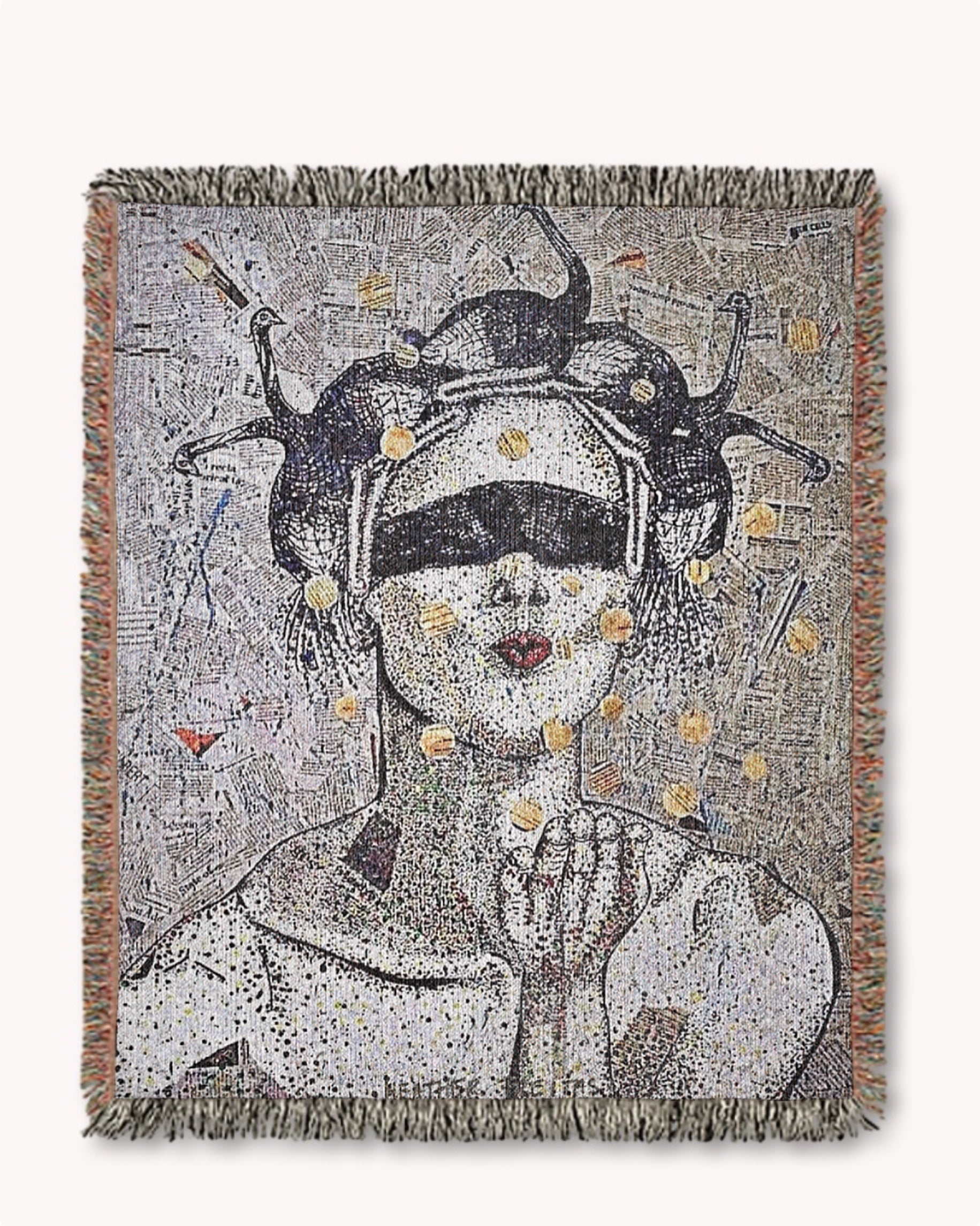 Woven with rich texture and timeless charm, this jacquard throw features original artwork by Heather Freitas, transformed into a keepsake meant to be lived with and loved. Whether folded at the foot of your bed, draped over a favorite chair, or hung as a tapestry, it adds a touch of nostalgia to your space—like something passed down, or discovered on a magical antique shop afternoon. A cozy companion for quiet days, storybook evenings, and slow, beautiful living.